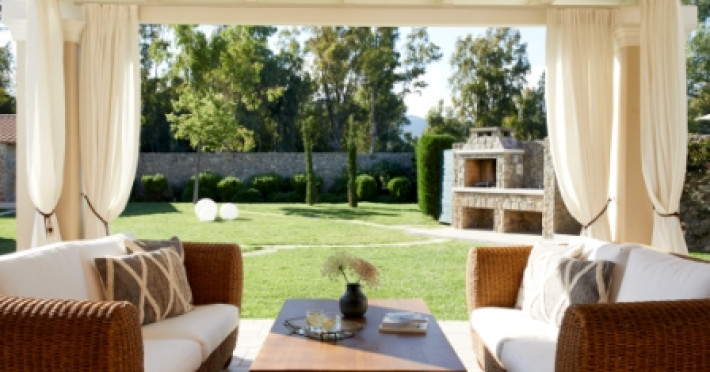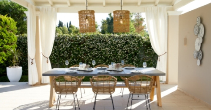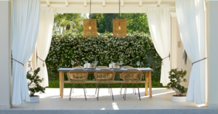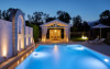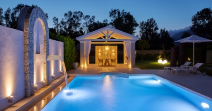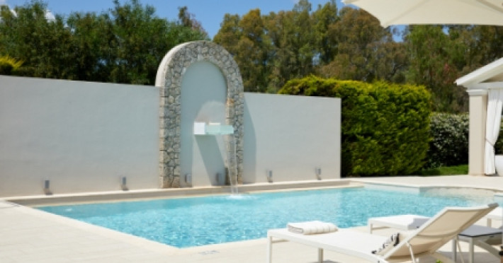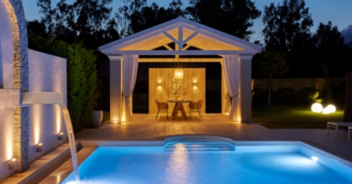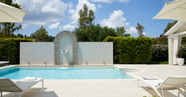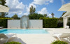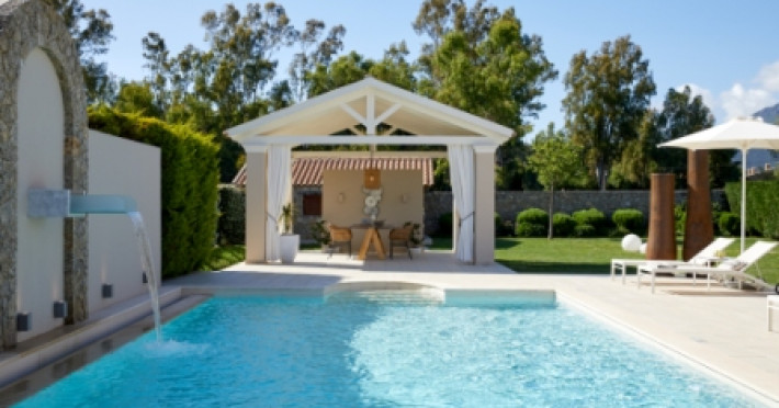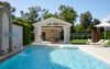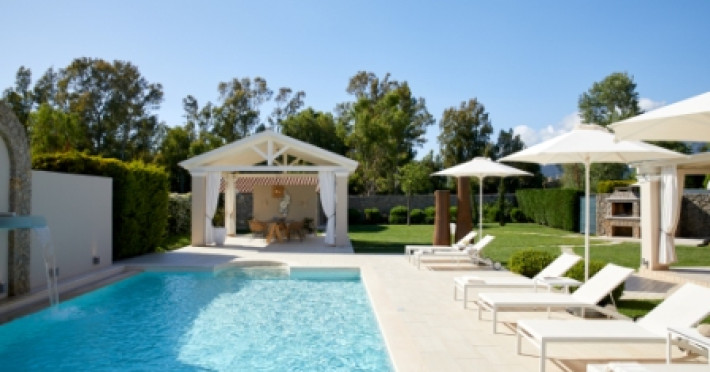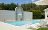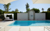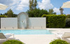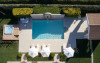 sitting area opens onto the outdoor terrace, the garden and the private pool and outdoor heating jacuzzi.