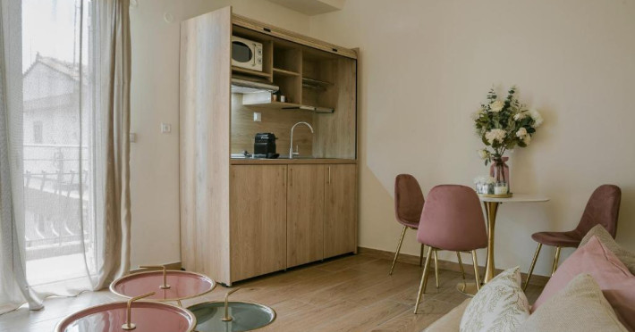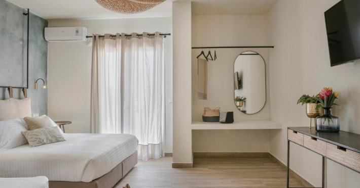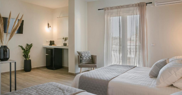 Socrates Apartments offer unique, modern, elegant and recently fully renovated features. They are situated just 2 min walk from the beach and 200 meters from the center of Skala, Socrates Apartments are the perfect gateway for families or couples looking to soak up the sun on the beach, taste the local cuisine or enjoy the summer warm nights in the local nightlife.