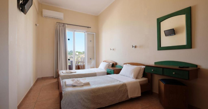 Camerele hotelului sunt prevăzute cu aer condiționat, dulap, TV cu ecran plat, baie privată, lenjerie de pat, prosoape și un balcon cu vedere la mare. Fiecare cameră are seif și acces gratuit la internet WiFi, iar anumite camere au și patio. Fiecare cameră a Hotelului Socrates are zonă de relaxare.