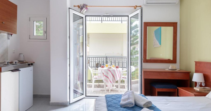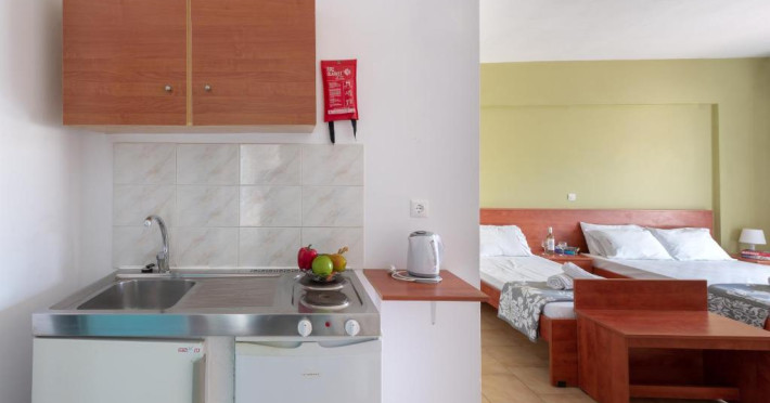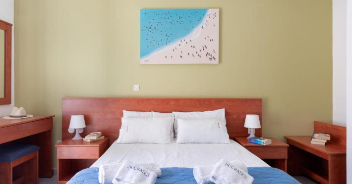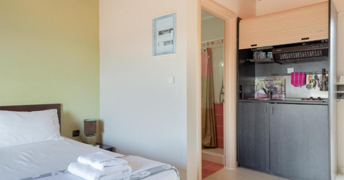 Fiecare unitate include o zonă de relaxare. Camerele de la Socrates Studios au dulap și baie privată.