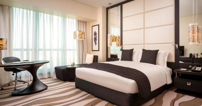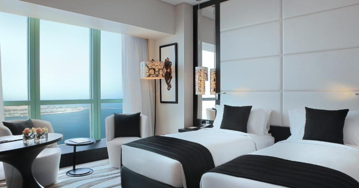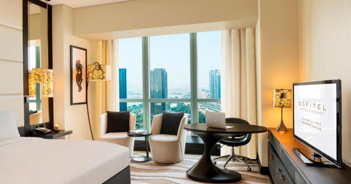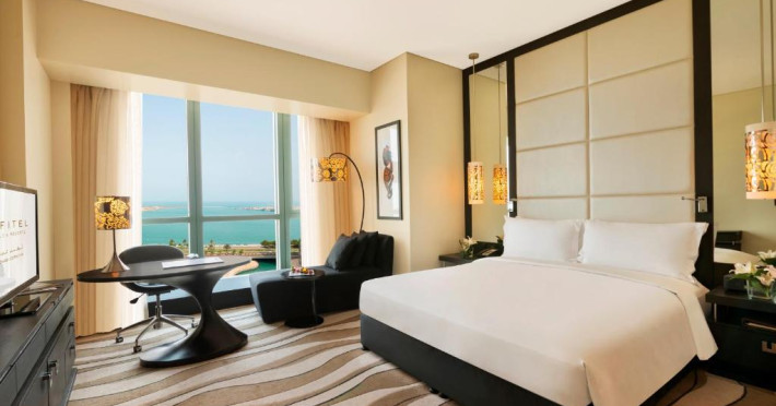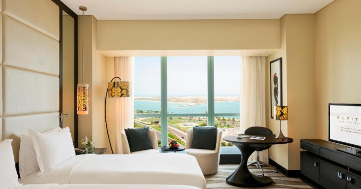 Camerele luminoase de la Sofitel Abu Dhabi Corniche sunt dotate cu mochetă, aer condiționat, Tv cu canale prin satelit și seif. Fiecare cameră dispune de minibar și cană-fierbător. Oaspeții pot solicita serviciul de room service pentru a servi masa sau diverse băuturi. Oaspeții au acces gratuit la serviciul Wi-fi în camere. În camere există baie cu cadă sau duș, foehn, articole de toaletă gratuite, precum și halate de baie și papuci. Camerele au vedere la mare sau la oraș. Curățenia in cameră se face zilnic.