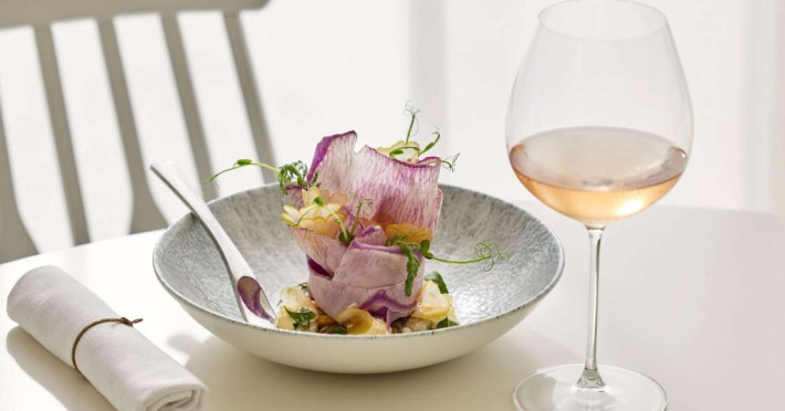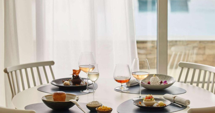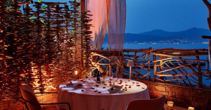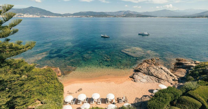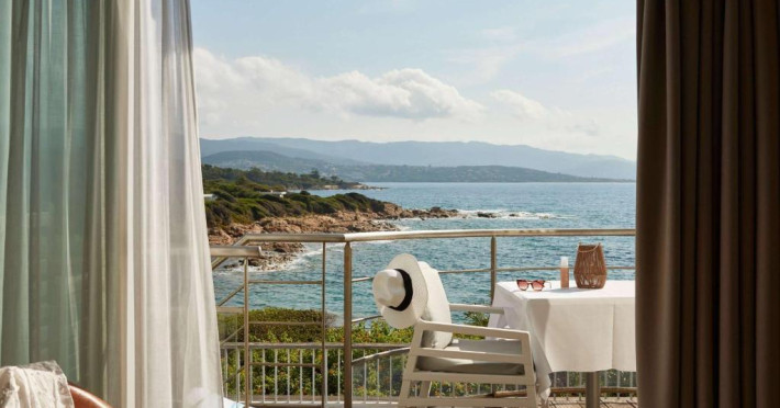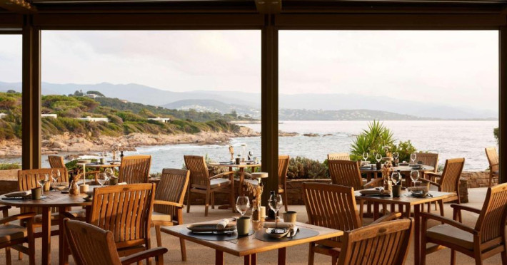 Restaurantul gourmet La Carte Postale servește specialități corsicane rafinate, iar terasa oferă pranzuri relaxante cu vedere la mare. Oaspeții au acces la plaja privată cu șezlonguri și servicii complete, precum și la piscina in aer liber cu infinity edge.