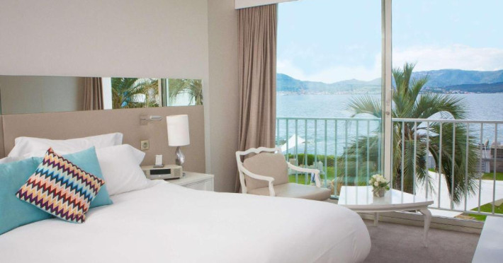 Camerele elegante imbină designul contemporan cu elemente mediteraneene și sunt dotate cu balcoane private care permit admirarea apusurilor memorabile deasupra golfului. Facilitățile de top includ un centru spa Thalassa de 900 mp cu piscină interioară cu apă de mare, săli de tratamente și zone de relaxare.