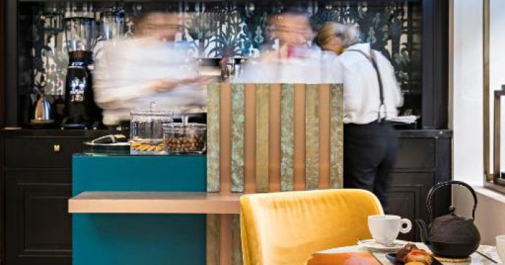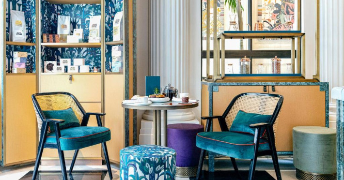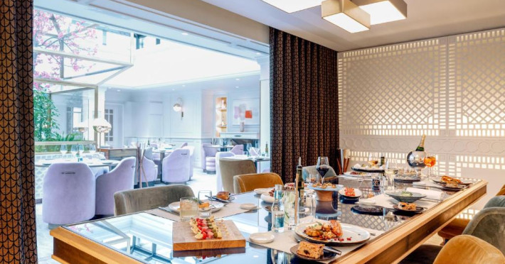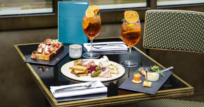 The romantic and contemporary restaurant, Le Café Scribe, features a large glass roof. Hotel Scribe Paris has a library on a mezzanine floor and serves teas from around the world with French pastries.