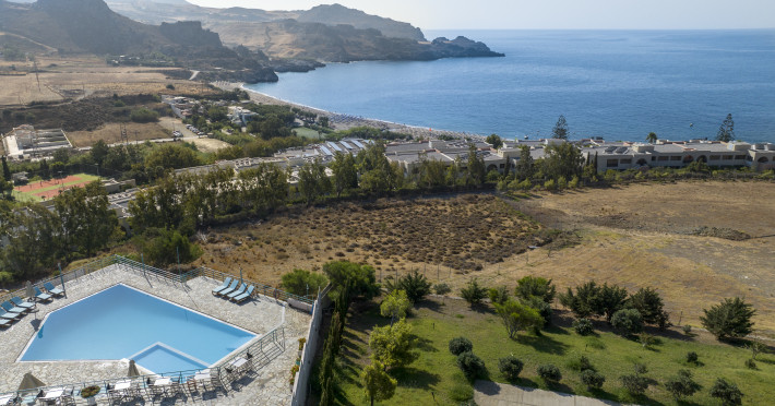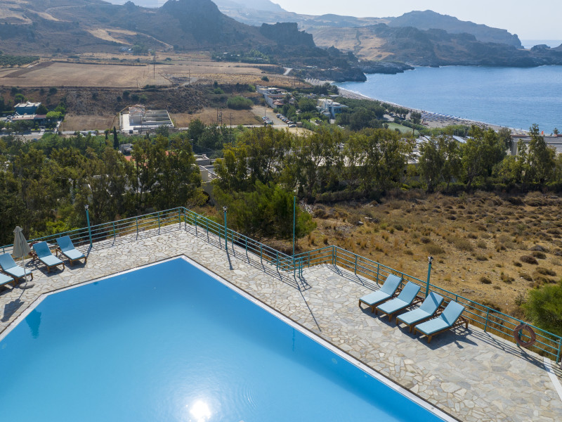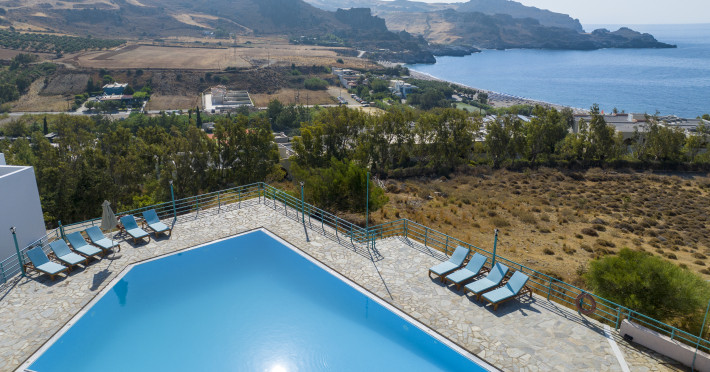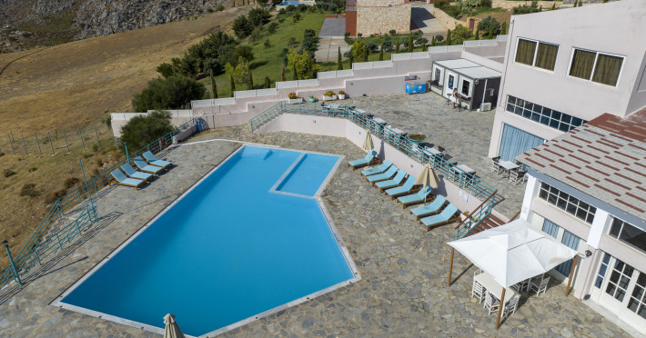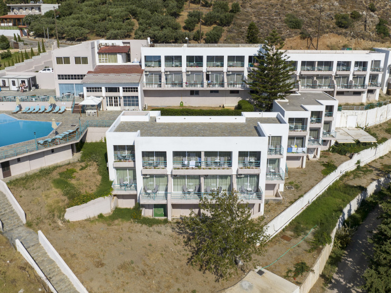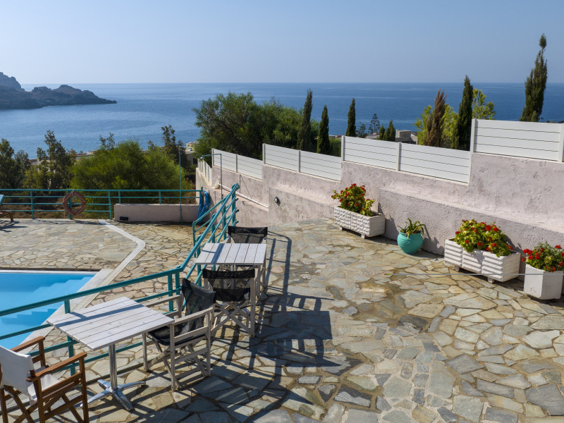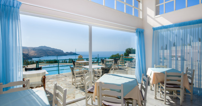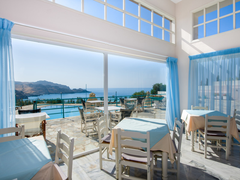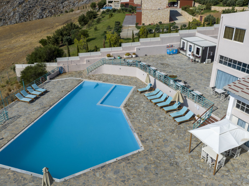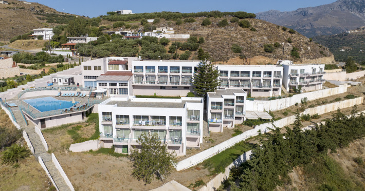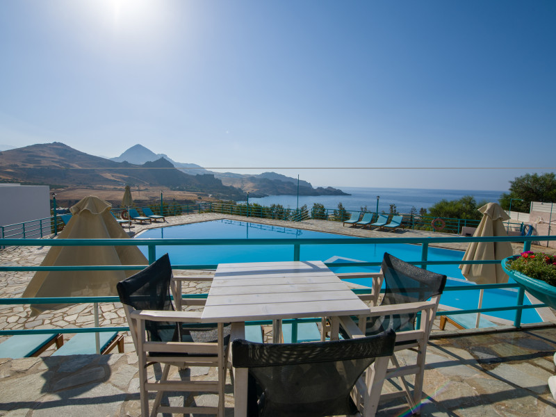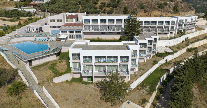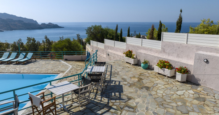 It offers 32 superior double rooms, 15 superior triple rooms, 4 one-bedroom suites and 2 luxurious two-bedroom suites equipped with coffee making facility, fridge, A/C, smart tv, safe, bath or shower and all you need for your comfort stay such as soft or hard pillow choice or other details which a traveler need to feel at home.All 53 rooms and suites are spread in five buildings, surrounded by gardens. All rooms have balcony with clear luxury sea view along with the room smart design.The main restaurant offers a rich buffet for breakfast, lunch and dinner with Greek and international gastronomic flavours. A rich choice for vegetarians and vegans is offered while special requests for allergies is provided.The pool bar is perfect for relaxing and enjoying a refreshing drink or cocktail followed by a dive into the clear waters of the pool.