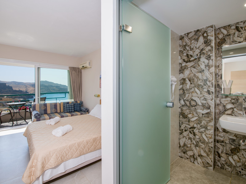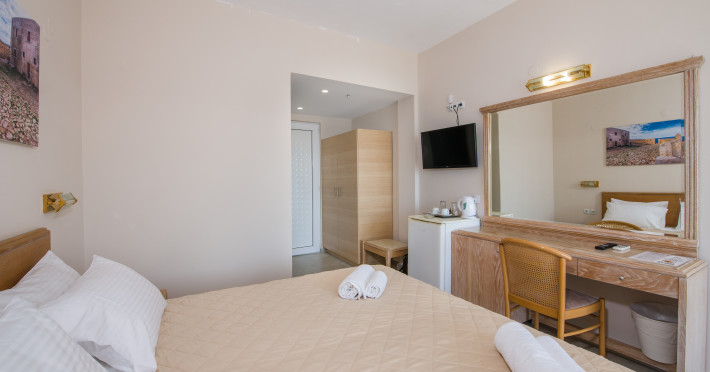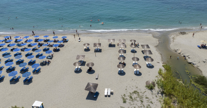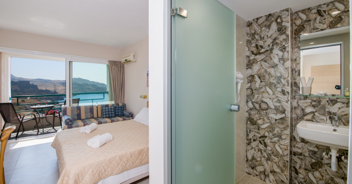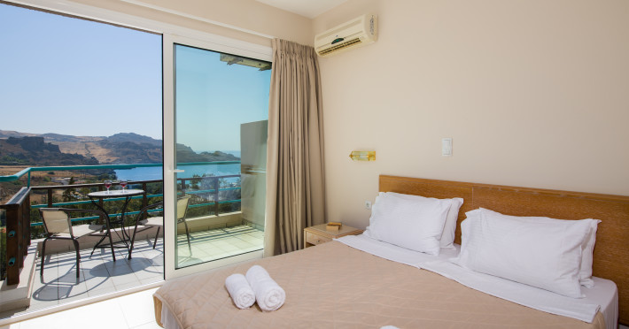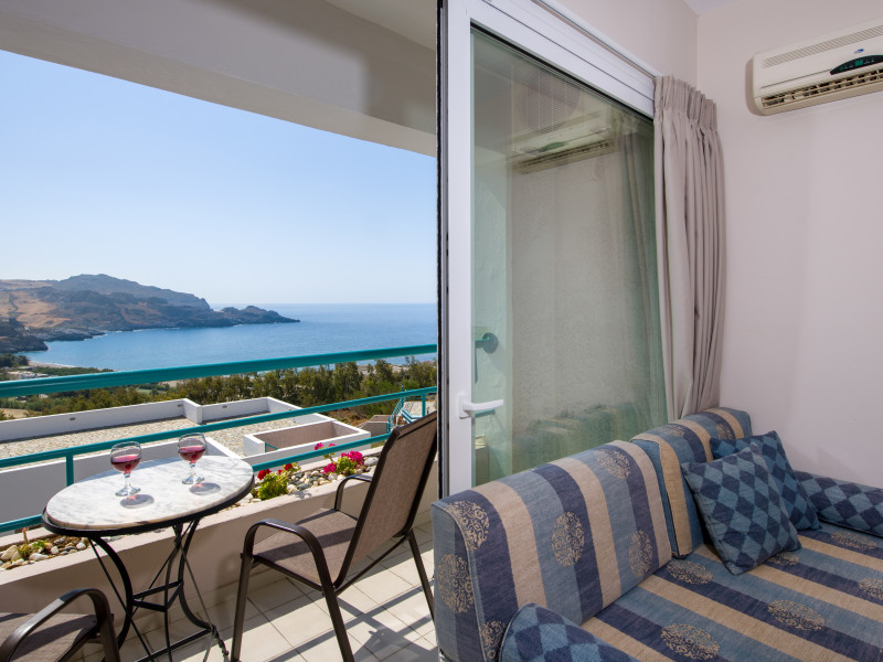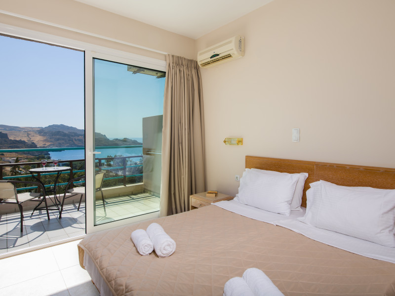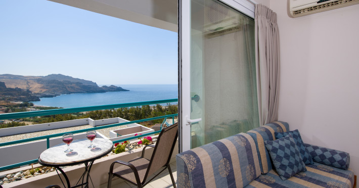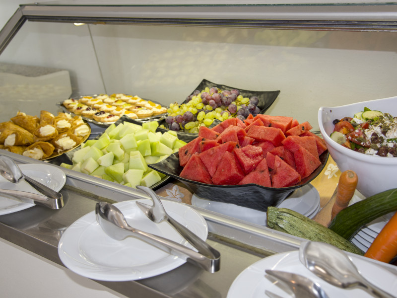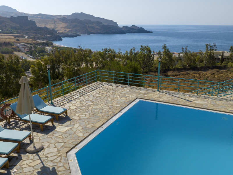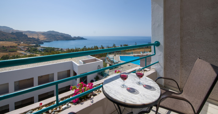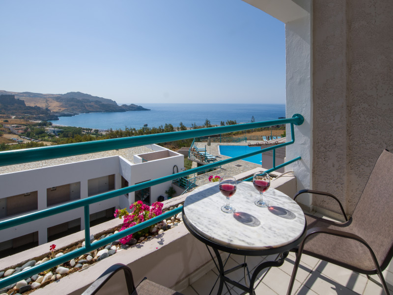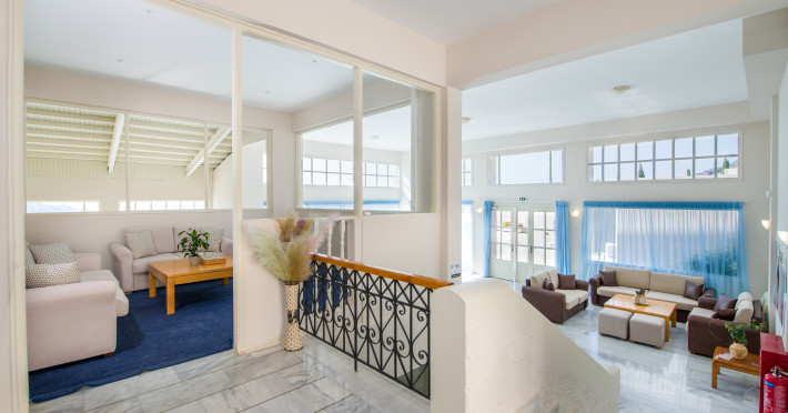 It offers 32 superior double rooms, 15 superior triple rooms, 4 one-bedroom suites and 2 luxurious two-bedroom suites equipped with coffee making facility, fridge, A/C, smart tv, safe, bath or shower and all you need for your comfort stay such as soft or hard pillow choice or other details which a traveler need to feel at home.All 53 rooms and suites are spread in five buildings, surrounded by gardens. All rooms have balcony with clear luxury sea view along with the room smart design.The main restaurant offers a rich buffet for breakfast, lunch and dinner with Greek and international gastronomic flavours. A rich choice for vegetarians and vegans is offered while special requests for allergies is provided.The pool bar is perfect for relaxing and enjoying a refreshing drink or cocktail followed by a dive into the clear waters of the pool.