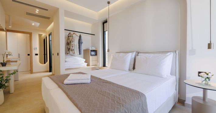 This is not merely accommodation, it’s a curated escape, where elegance meets nature in a symphony of light, texture, and coastal beauty. Each unit features a private pool and sweeping views of the Aegean, with interiors that blend minimalist design and earthy sophistication. Sokratis LocoLux Villas & Suites in Malia offers a year-round outdoor swimming pool, lush garden, and spacious terrace. Guests enjoy free WiFi, ensuring connectivity throughout their stay. The hotel features private check-in and check-out services, a paid shuttle, concierge, daily housekeeping, and free on-site parking. Additional facilities include an outdoor seating area, family rooms, barbecue.
