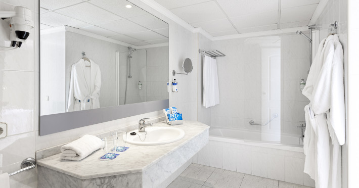 Around 300 m from a sandy beach and approximately 200 m from the sea is located the hotel Sol Arona TENERIFE. The nearest bars and restaurants can be found at a distance of around 100 m. The old town is around 300 m away. A supermarket and other shops you also reach after approximately 100 m. There is a shuttle between the hotel and the airport (for a fee). The beach is patrolled by a lifeguard. Near the beach there is a promenade where you can go for a stroll. The hotel has a 24h reception (check-in is possible around the clock), a lobby bar, Wi-Fi, 4 lifts, a supermarket and other shops, cash machine, showers and changing rooms, a first aid kit, parking spaces as well as a TV lounge with satellite TV. In the outdoor area you will find a garden as well as a pool that is open seasonally (open all year), where sun loungers, sun umbrellas and pool towels are available for free. There is also a children's pool. Furthermore, you can relax outdoors on the sun terrace. You can store your valuables in the safe (extra fee), and your luggage in the hotel`s storage room. For very young guests, kid`s chairs, highchairs and cots can be provided. For the smallest children prams can be rented in the hotel. There is also a laundry and ironing service available at an additional cost to customers. If necessary, you can contact the medical centre at any time. Guests at the accommodation can get a wake-up call from the hotel personnel. For conventions and other business meetings, the hotel offers a business centre with a total of 50 seats, printer as well as overhead projector. If you want to explore the holiday region, you can use the car and motorbike rental service close to the hotel (extra fee). At the hotel reception, tickets are offered for excursions in the area. In your hotel, a lot of focus is placed on sustainability. This includes among others the hotel`s own recycling bins. The hotel requires that all guests pay a deposit upon arrival. Due to its barrier-free facilities , such as barrier-free entrances, wheelchair accessible rooms and wheelchair-accessible bathrooms, the hotel is also suitable for wheelchair users. Catering As catering services the hotel offers all-inclusive, half board, half board plus, full board and breakfast only. Breakfast is offered continental or from the buffet. Lunch and dinner are also served from the buffet (extras on request and at extra cost). As part of the all-inclusive service, international alcoholic beverages (24h) are available around the clock and at no extra charge. For the meals, there are a buffet restaurant (calorie-reduced, gluten-free and vegetarian dishes) and 2 bars, the cafeteria as well as the pool bar. Appropriate clothing is required for lunch and dinner. Distances