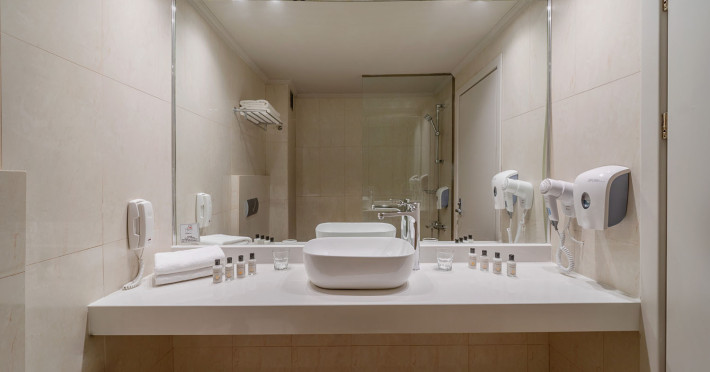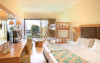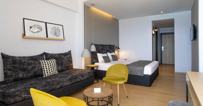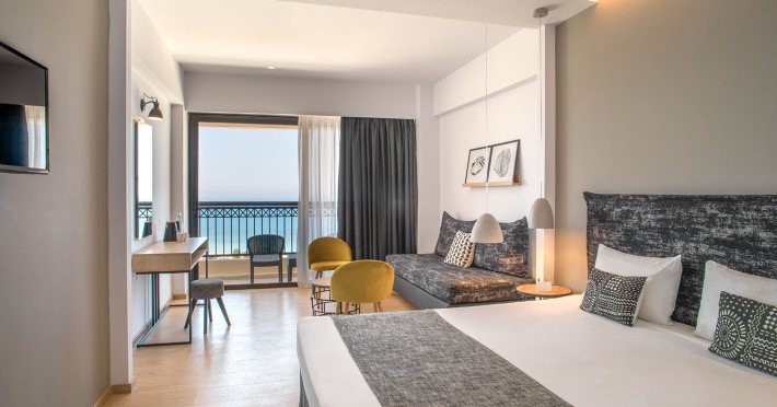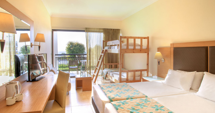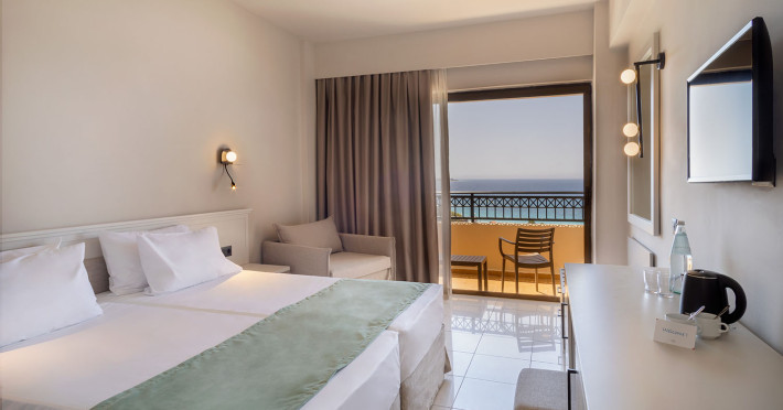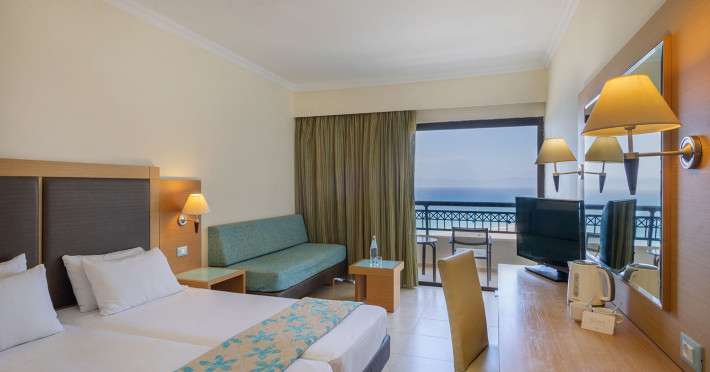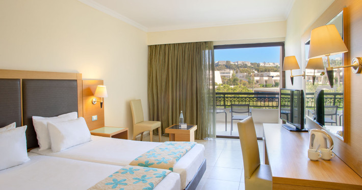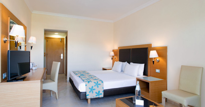 Complexul a fost construit în anul 1981, ultima renovare având loc în anul 2010. În total sunt disponibile 377 de camere aflate în 9 clădiri, cu nivele diferite. Unitățile de cazare sunt mari și confortabile, unele cu priveliște superbă către mare, hotelul aflându-se la doar 70 de metrii deasupra apei, iar unele cu vedere spre oraș. Camerele luminoase și mobilate cu gust, sunt dotate cu aer condiționat/ încălzire, facilități de călcat, seif, pardoseală de lemn/ parchet, birou de lucru, baie privată cu cadă sau duș, uscător de păr, papuci, TV LCD prin satelit, telefon, seif pentru laptop, fierbător electric, frigider, serviciu de trezire, balcon cu vedere la grădină, mare sau oraș, acces internet Wi-Fi, serviciu de curățenie. Facilitățle care nu sunt incluse în tariful camerei: mini-bar, papuci și halat de baie (la cerere).