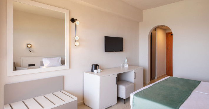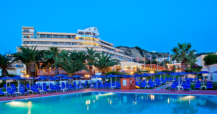 Construit în formă de amfiteatru și înconjurat de grădini frumos amenajate, în cadrul acestui complex oaspeții au la dispoziție terasă la soare, grădină, piscină în aer liber (deschisă în sezon), restaurant (bufet), bar, snack bar, acces internet Wi-Fi contra cost, aer condiţionat, camere izolate fonic, seif, lift, camere de familie, camere pentru nefumători, posibilă parcarea publică gratuit la proprietate (nu este necesară rezervare), recepție deschisă nonstop, capelă/ sanctuar, zonă pentru fumători, Express Check-In/ Check-Out, încălzire, facilități pentru persoane cu handicap, prosoape de plajă (depozit rambursabil, de 3 ori pe săptămână), scaune înalte pentru copii, prânz la pachet, personal multilingv (greacă, engleză standard, germană). La recepție pot fi cerute mai multe informații despre depozitarea bagajelor. Alte servicii posibile: babysitting/ servicii pentru copii, închirieri biciclete și mașini, schimb valutar, curățătorie chimică, serviciu de călcat îmbrăcăminte, spălătorie, serviciu de ticketing, centru turistic de informare, facilități cameră VIP, centru de afaceri, fax/ copiator.