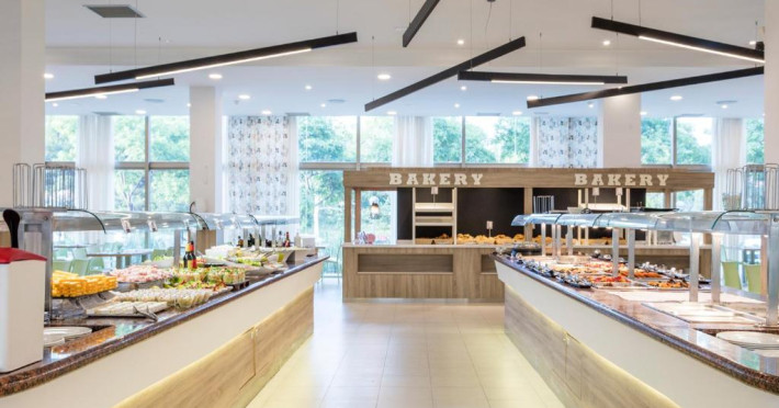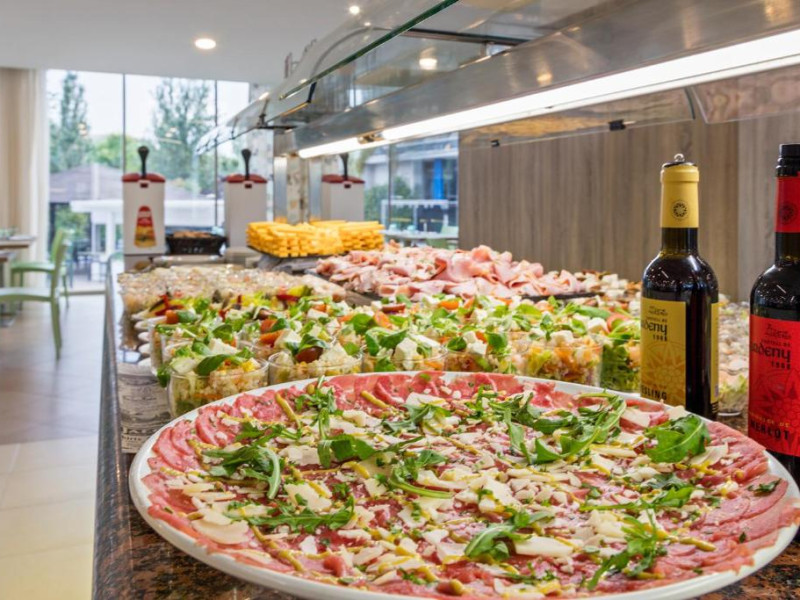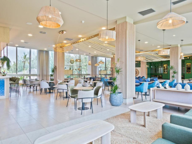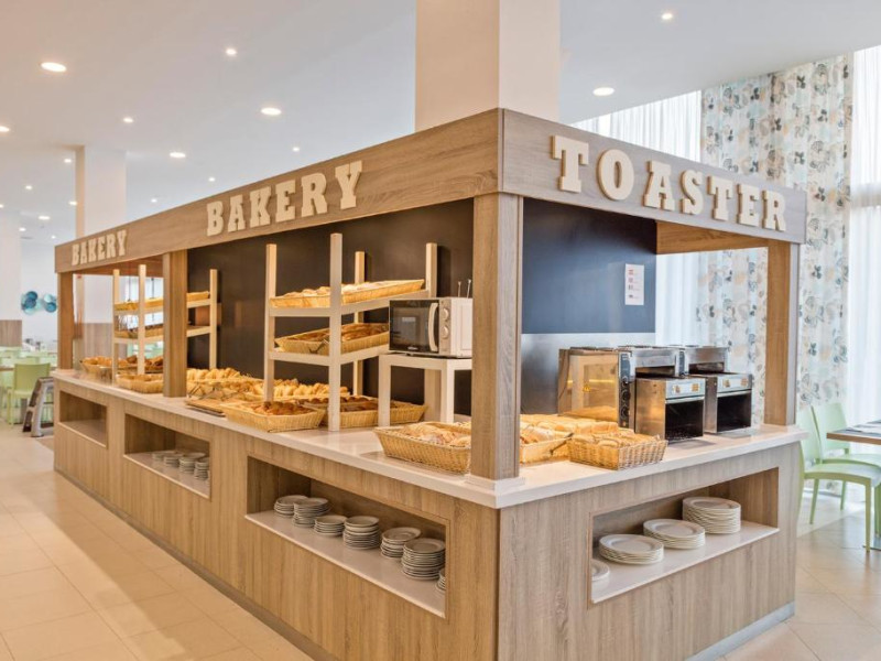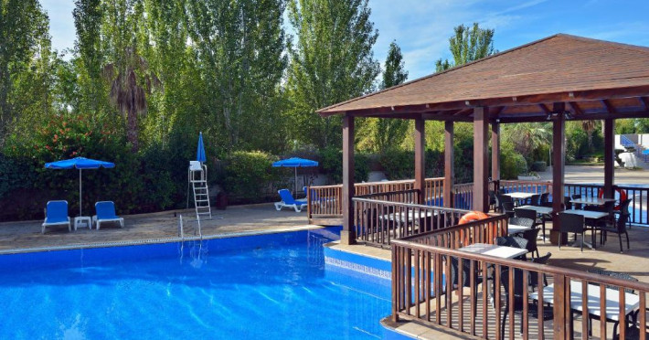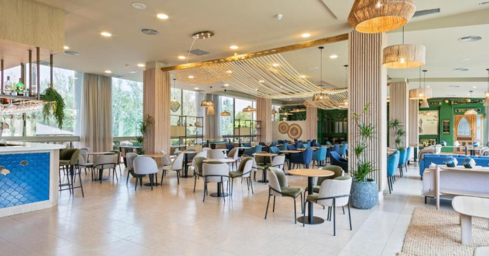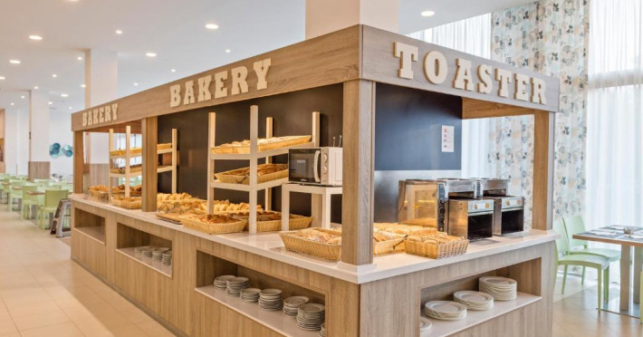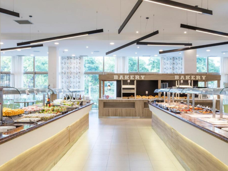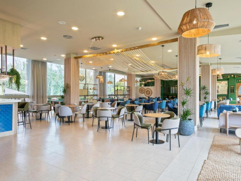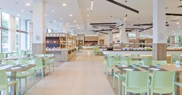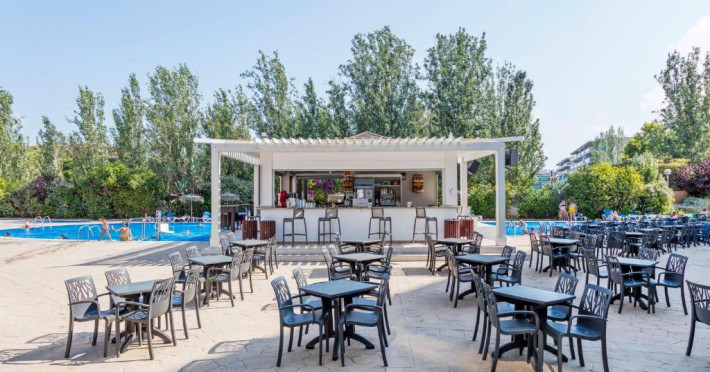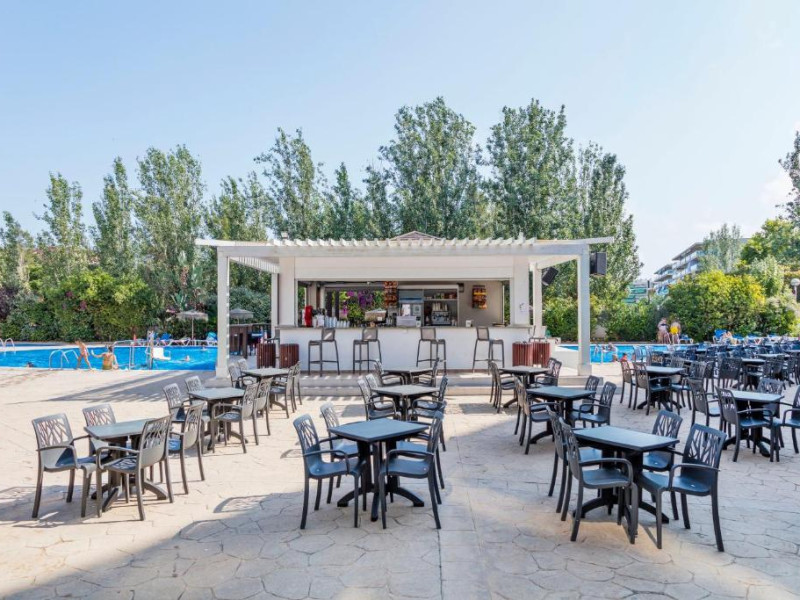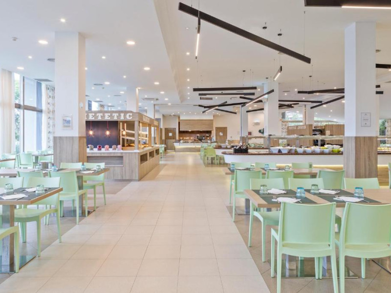 Restaurantul tip bufet serveste o selectie de mancăruri mediteraneene. Oaspeții se pot relaxa la snack barul din apropierea piscinei sau la pubul englezesc.
