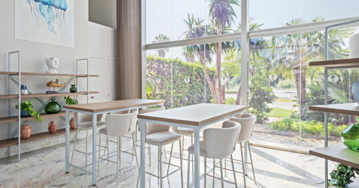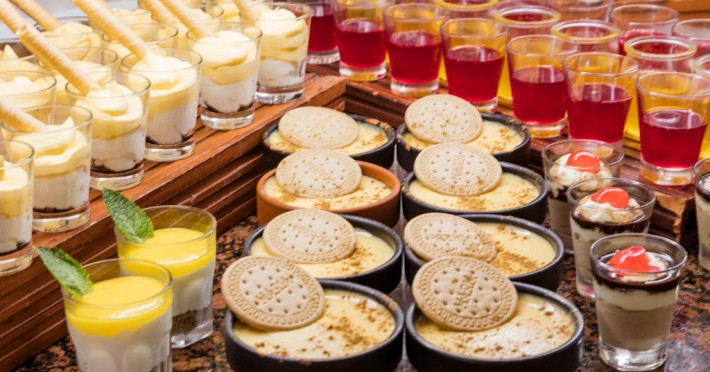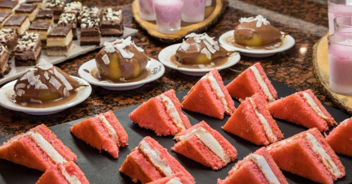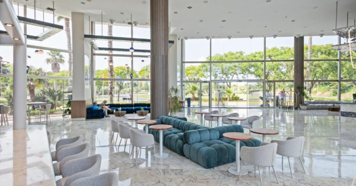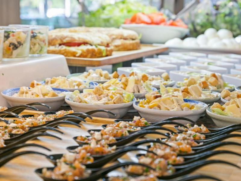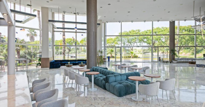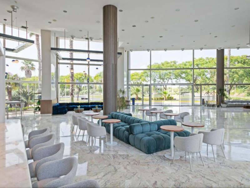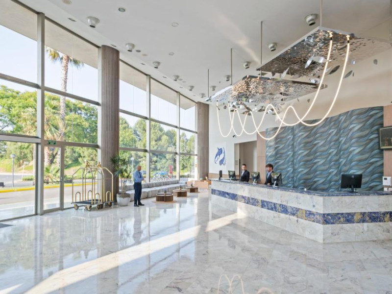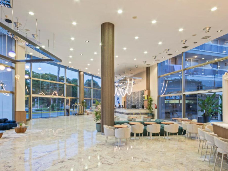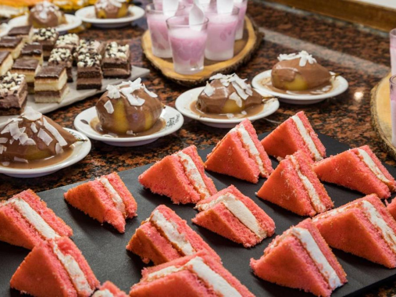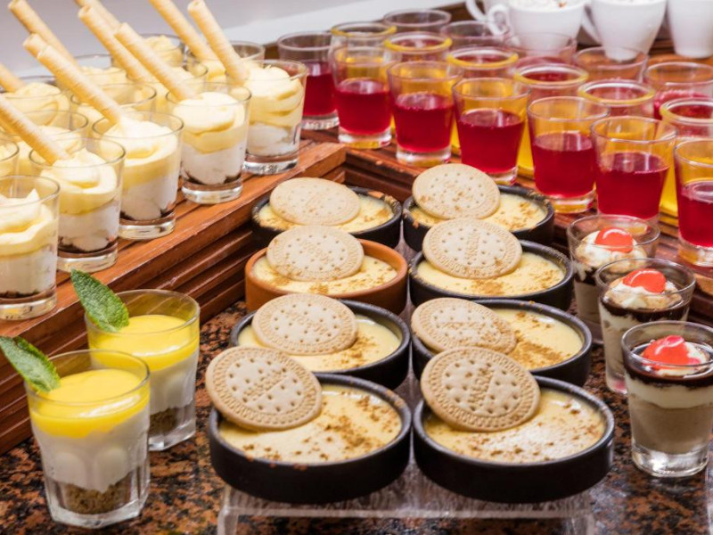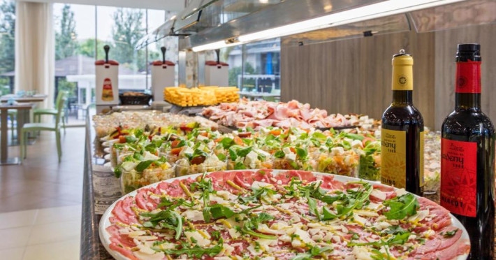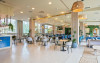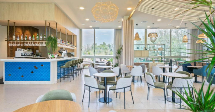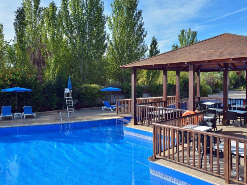 Restaurantul tip bufet serveste o selectie de mancăruri mediteraneene. Oaspeții se pot relaxa la snack barul din apropierea piscinei sau la pubul englezesc.