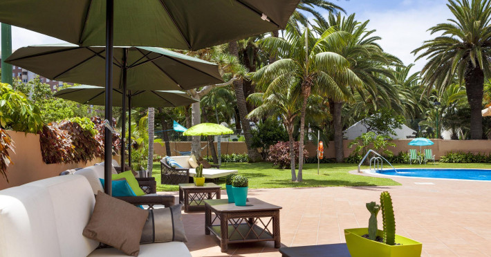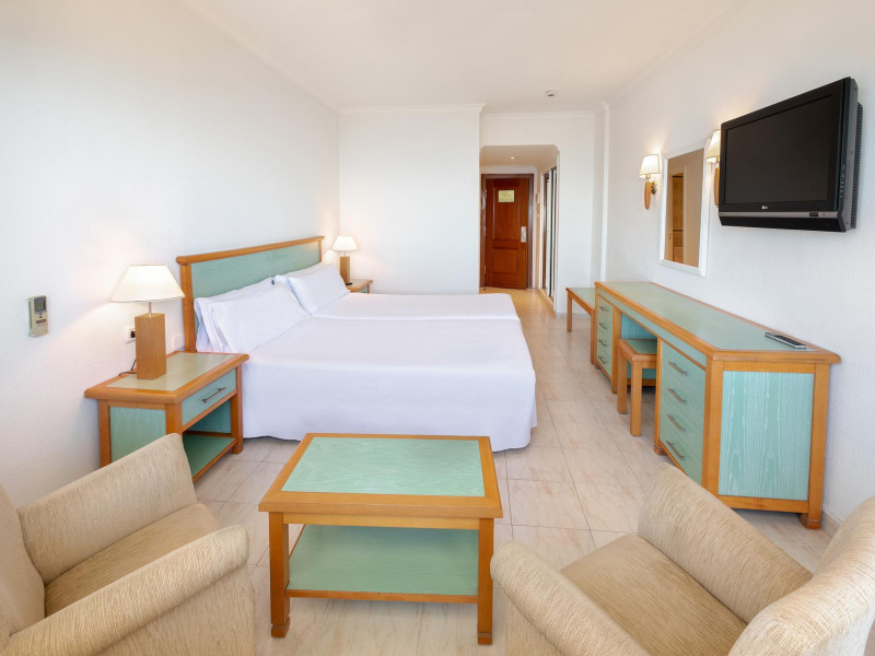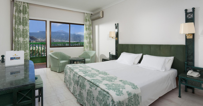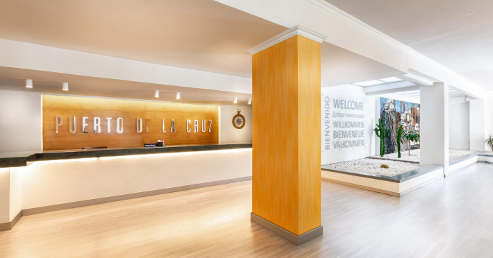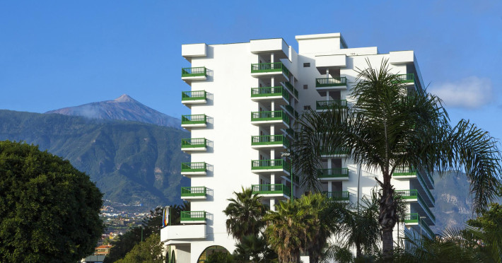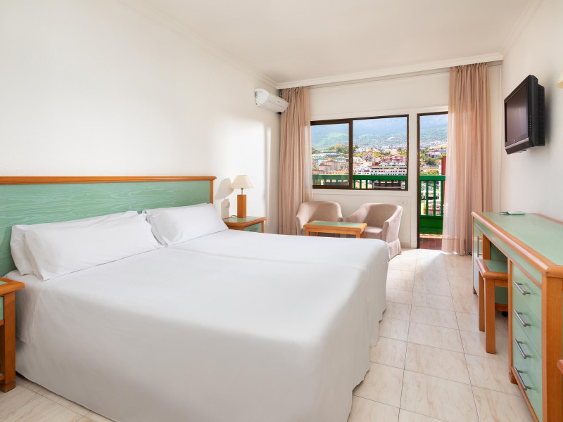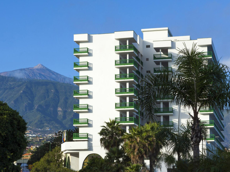 The hotel Sol Puerto de la Cruz Tenerife is located approx. 600 m from a sandy/stone beach. The nearest restaurants and bars can be reached in a few minutes on foot. The old town is also just a a few steps away. Shops are right on your doorstep. In the surrounding an aqua park (approx. 115 km), a cinema (approx. 5 km), a golf course (approx. 2 km), a disco (next to the building) and the nearby leisure park offer entertainment during the best time of the year. The beach is patrolled by a lifeguard. Here, there are beach towels available. Near the beach there is a promenade where you can go for a stroll. The air-conditioned hotel is equipped with a 24h reception (check-in is possible around the clock), a lobby bar, Wi-Fi (for a fee), a lift, showers and changing rooms, a first aid kit as well as a TV lounge. In the outdoor area you will find a garden as well as a seasonally open, heated pool (open , where sun loungers, sun umbrellas and pool towels are available for free. There is also a children's pool. Furthermore, outside you can find a sun terrace. You can store your valuables in the safe (extra fee), and your luggage in the hotel`s storage roomn. For your entertainment, the hotel offers a library/reading room. For very young guests, kid`s chairs can be provided). To clean your clothes there are a laundry service (extra fee) and an ironing service. The rooms are cleaned. Guests at the accommodation can get a wake-up call from the hotel personnel. For conventions and other business meetings, the hotel offers a conference area with a total of 20 seats, printer as well as overhead projector. If you want to explore the holiday region, you can use the car and motorbike rental service close to the hotel (extra fee). In addition, the hotel sells tickets excursions. In your hotel, a lot of focus is placed on sustainability. This includes the hotel`s own recycling bins and a central room air-conditioning. Due to its barrier-free facilities , such as barrier-free entrances and wheelchair accessible rooms, the hotel is also suitable for wheelchair users (dimensions: lift depth: 2,5 m). Catering As catering services the hotel offers half board. Breakfast (08:00 A 10:15 hrs) is offered continental, from the buffet or as brunch. Enjoy your lunch à la carte. Dinner (18:30 A 21:15 hrs) is also served as a buffet. For the meals, there are a buffet restaurant with terrace (calorie-reduced, gluten-free and vegetarian dishes) and the cafeteria as well as the pool bar (open from 11 A 00). Distances