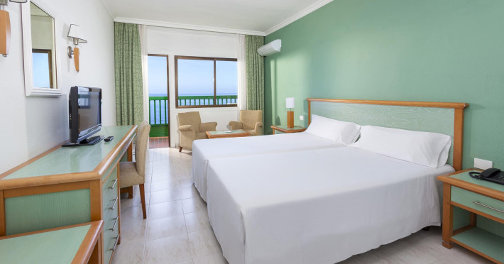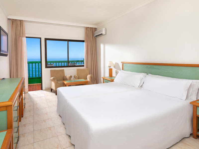 The hotel Sol Puerto de la Cruz Tenerife is located approx. 600 m from a sandy/stone beach. The nearest restaurants and bars can be reached in a few minutes on foot. The old town is also just a a few steps away. Shops are right on your doorstep. In the surrounding an aqua park (approx. 115 km), a cinema (approx. 5 km), a golf course (approx. 2 km), a disco (next to the building) and the nearby leisure park offer entertainment during the best time of the year. The beach is patrolled by a lifeguard. Here, there are beach towels available. Near the beach there is a promenade where you can go for a stroll. The air-conditioned hotel is equipped with a 24h reception (check-in is possible around the clock), a lobby bar, Wi-Fi (for a fee), a lift, showers and changing rooms, a first aid kit as well as a TV lounge. In the outdoor area you will find a garden as well as a seasonally open, heated pool (open , where sun loungers, sun umbrellas and pool towels are available for free. There is also a children's pool. Furthermore, outside you can find a sun terrace. You can store your valuables in the safe (extra fee), and your luggage in the hotel`s storage roomn. For your entertainment, the hotel offers a library/reading room. For very young guests, kid`s chairs can be provided). To clean your clothes there are a laundry service (extra fee) and an ironing service. The rooms are cleaned. Guests at the accommodation can get a wake-up call from the hotel personnel. For conventions and other business meetings, the hotel offers a conference area with a total of 20 seats, printer as well as overhead projector. If you want to explore the holiday region, you can use the car and motorbike rental service close to the hotel (extra fee). In addition, the hotel sells tickets excursions. In your hotel, a lot of focus is placed on sustainability. This includes the hotel`s own recycling bins and a central room air-conditioning. Due to its barrier-free facilities , such as barrier-free entrances and wheelchair accessible rooms, the hotel is also suitable for wheelchair users (dimensions: lift depth: 2,5 m). Catering As catering services the hotel offers half board. Breakfast (08:00 A 10:15 hrs) is offered continental, from the buffet or as brunch. Enjoy your lunch à la carte. Dinner (18:30 A 21:15 hrs) is also served as a buffet. For the meals, there are a buffet restaurant with terrace (calorie-reduced, gluten-free and vegetarian dishes) and the cafeteria as well as the pool bar (open from 11 A 00). Distances- Nearest town: approx. 25 km