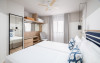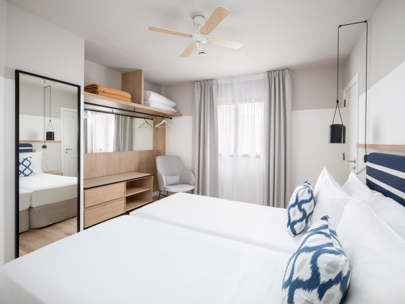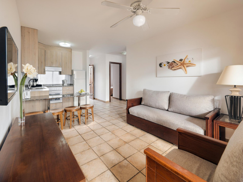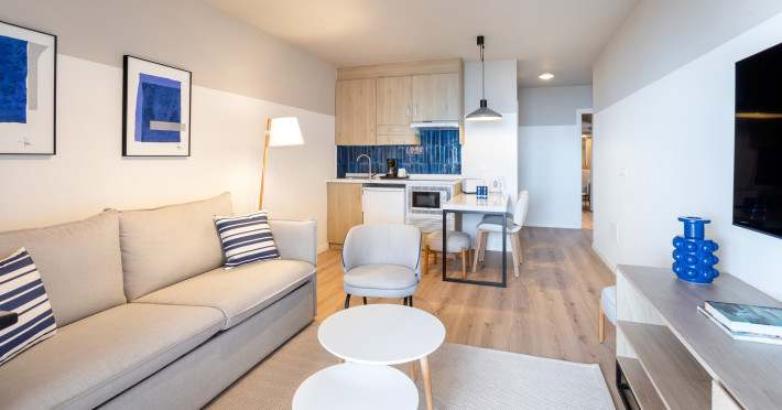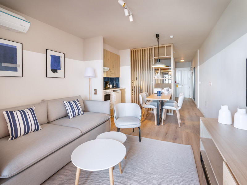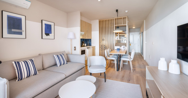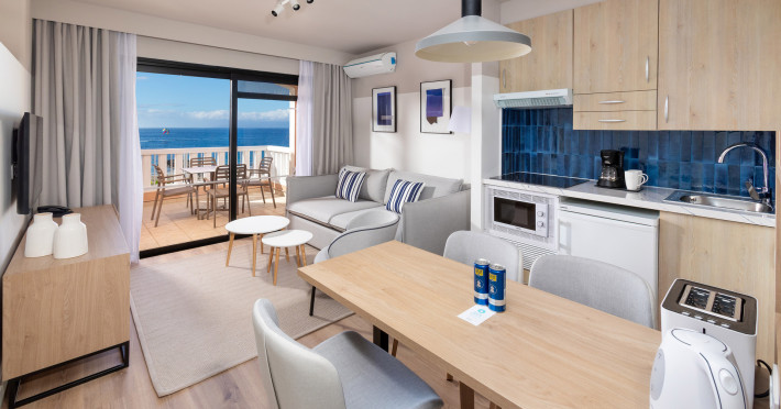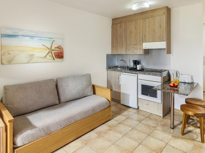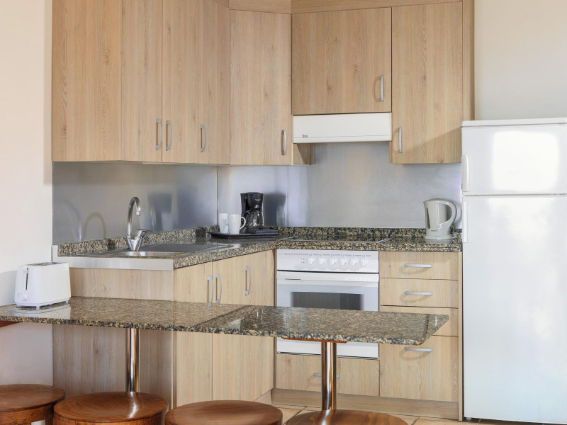 In the vicinity of the sandy beach lies the apart hotel Sol Sun Beach Apartments. The nearest restaurants and bars can be reached in a few minutes on foot. The old town is around 85 km away. A supermarket and other shops you reach after around 100 m. Nearby there is a disco which offers entertainment in high season. The beach is patrolled by a lifeguard and awarded a blue flag. Near the beach there is a promenade where you can go for a stroll. The air-conditioned hotel is equipped with a 24h reception (check-in is possible around the clock), a lounge, a lobby bar, Wi-Fi, a lift as well as showers and changing rooms. In the outdoor area you will find a heated pool (open all year), where you can rent sun umbrellas for a fee and sun loungers and pool towels are available for free. For children there is also a children's pool. Furthermore, you can relax outdoors on the sun terrace. You can store your valuables in the safe, and your luggage in the hotel`s storage room. For very young guests, kid`s chairs and cots can be provided. For the smallest children prams can be rented in the hotel. There is also an ironing service. If necessary, you can contact the medical centre at any time. Guests at the accommodation can get a wake-up call from the hotel personnel. If you want to explore the holiday region, you can use the car and motorbike rental service close to the hotel. At the reception, tickets are offered for excursions in the area. Pets like cats and dogs are allowed in the hotel (on request) . In your hotel, a lot of focus is placed on sustainability. This includes the hotel`s own recycling bins and organic food. Due to its barrier-free facilities , such as barrier-free entrances and wheelchair-accessible bathrooms, the hotel is also suitable for wheelchair users. Catering As catering services the hotel offers half board and breakfast only. Breakfast is offered continental or from the buffet. Enjoy your lunch as a set meal or à la carte. Dinner is also served as a buffet. For the meals, there are a buffet restaurant with terrace (gluten-free and vegetarian dishes) and 2 bars, the cafeteria as well as the pool bar. Distances