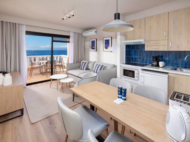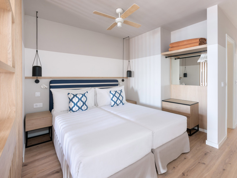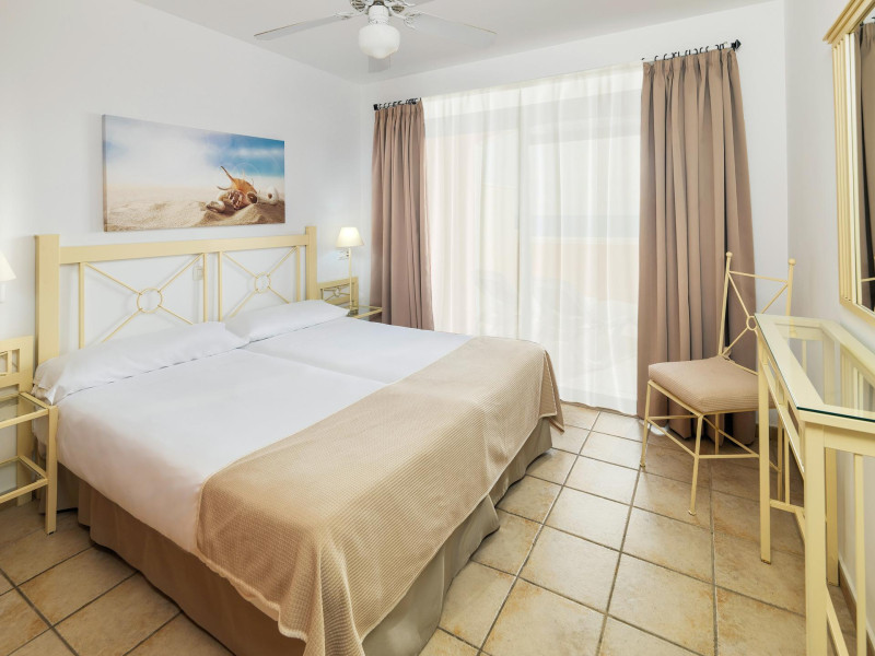 In the vicinity of the sandy beach lies the apart hotel Sol Sun Beach Apartments. The nearest restaurants and bars can be reached in a few minutes on foot. The old town is around 85 km away. A supermarket and other shops you reach after around 100 m. Nearby there is a disco which offers entertainment in high season. The beach is patrolled by a lifeguard and awarded a blue flag. Near the beach there is a promenade where you can go for a stroll. The air-conditioned hotel is equipped with a 24h reception (check-in is possible around the clock), a lounge, a lobby bar, Wi-Fi, a lift as well as showers and changing rooms. In the outdoor area you will find a heated pool (open all year), where you can rent sun umbrellas for a fee and sun loungers and pool towels are available for free. For children there is also a children's pool. Furthermore, you can relax outdoors on the sun terrace. You can store your valuables in the safe, and your luggage in the hotel`s storage room. For very young guests, kid`s chairs and cots can be provided. For the smallest children prams can be rented in the hotel. There is also an ironing service. If necessary, you can contact the medical centre at any time. Guests at the accommodation can get a wake-up call from the hotel personnel. If you want to explore the holiday region, you can use the car and motorbike rental service close to the hotel. At the reception, tickets are offered for excursions in the area. Pets like cats and dogs are allowed in the hotel (on request) . In your hotel, a lot of focus is placed on sustainability. This includes the hotel`s own recycling bins and organic food. Due to its barrier-free facilities , such as barrier-free entrances and wheelchair-accessible bathrooms, the hotel is also suitable for wheelchair users. Catering As catering services the hotel offers half board and breakfast only. Breakfast is offered continental or from the buffet. Enjoy your lunch as a set meal or à la carte. Dinner is also served as a buffet. For the meals, there are a buffet restaurant with terrace (gluten-free and vegetarian dishes) and 2 bars, the cafeteria as well as the pool bar. Distances- Nearest town: approx. 75 km
