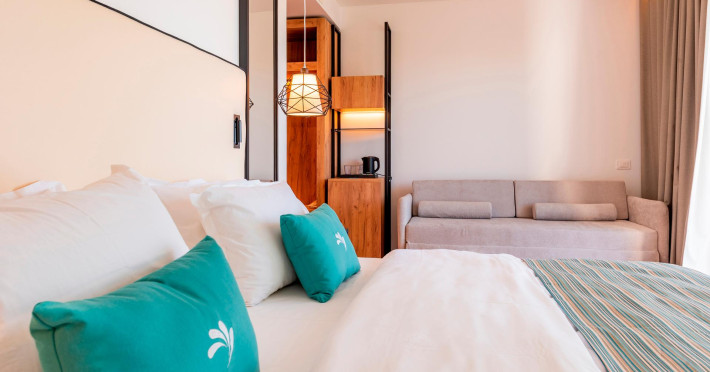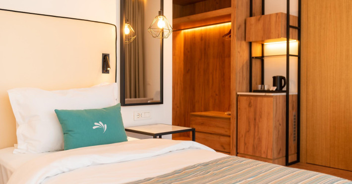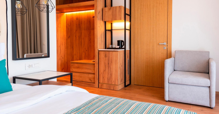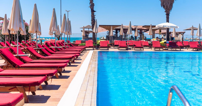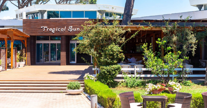 The aparthotel Sol TROPIKAL DURRES is located in the vicinity of a private and public sandy beach. The old town is around 10 km away. A supermarket and other shops you reach after around 100 m. There is a shuttle between the hotel and the airport (for a fee). The beach is awarded a blue flag. On the beach there is also a clubhouse. Here, there are sun loungers, cushions, sun umbrellas and beach towels available. Cold drinks are served at the beach bar. The seasonally air-conditioned hotel has a 24h reception (check-in is possible around the clock), a lobby bar, Wi-Fi, internet access, a lift, cash machine, a first aid kit as well as parking spaces (limited). In the outdoor area you will find a garden as well as a supervised pool, where pool towels are available for free. There is also a separate and an integrated children's pool. Furthermore, outside you can find a terrace. In addition, the hotel Sol TROPIKAL DURRES is video-monitored 24h a day. You can spend social time at the beach club. For the young hotel guests there is a playground. For very young guests, kid`s chairs can also be provided. You can store your luggage in the hotel's storage room. There is also a laundry service available at an additional cost to customers. Ironing equipment can be rented at the hotel for a fee. For your comfort there is a concierge service. The energy supply is 220, 110, 120, 230 and 240 Volts. For conventions and other business meetings, the hotel offers an auditorium with a video projector, printer as well as scanner. For guests on their honeymoon, the hotel has special offers such as a romantically-decorated room, rooms with a particularly romantic location and view, romantic dishes in the restaurant, champagne, sparkling wine, a basket of fruit or flowers in the room. In your hotel, a lot of focus is placed on sustainability. This includes waste segregation in the rooms, the provision of soap, shampoo and lotion dispensers, organic food and ecological meals, a central room air-conditioning and environmentally-friendly cleaning. The hotel requires that all guests pay a deposit upon arrival. Euro/Master Card, Visa and EC cards are accepted as means of payment. Catering As catering services the hotel offers all-inclusive, half board, full board and self-catering. Breakfast is offered American, continental, from the buffet or à la carte. Enjoy your lunch from the buffet or as a set meal. Dinner is also served as a buffet, as a set meal or à la carte. All Inclusive Light includes local alcoholic beverages. As part of the all-inclusive service, international alcoholic beverages (limited) are available around the clock and at no extra charge. For the meals, there are a buffet restaurant with terrace (Italian, Mediterranean, calorie-reduced, gluten-free and vegetarian dishes) and several bars as well as the pool bar. A picnic bench can be used by guests for self-catering. Distances