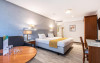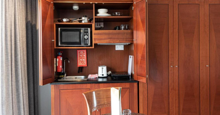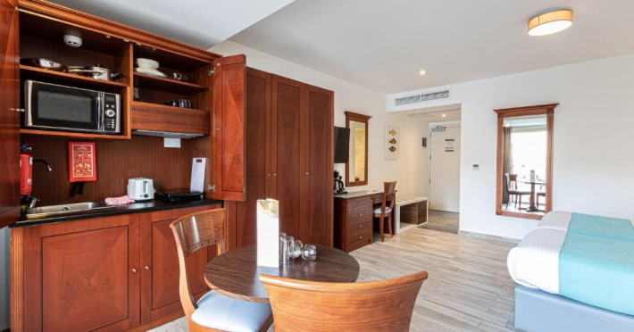 Camerele si studiourile au TV prin satelit, aer conditionat si aparat de cafea si ceai. Studiourile au o chicinetă mică.