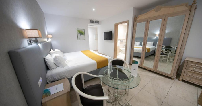 Hotelul Solana oferă camere și studiouri moderne, cu acces Wi-Fi gratuit, la 10 minute de mers pe jos de plaja golfului Melieha. Terasa cu piscină de pe acoperiș este o adevărată atracție.
