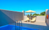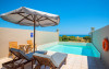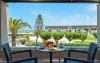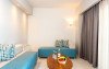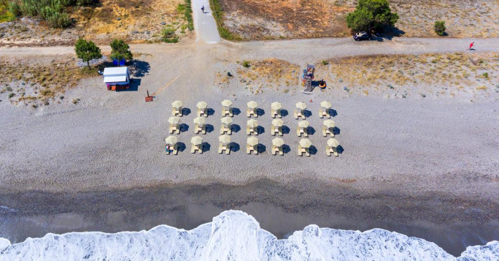 Solimar Aquamarine are în apropiere o plajă cu nisip. Pe plajă există șezlonguri și umbrele de plajă.