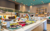 La Solimar Aquamarine oaspeții au la dispoziție 2 restaurante unde pot savura mâncăruri delicioase, în stil bufet sau à la carte. Preparate din bucătăria grecească și internațională așteaptă să fie degustate în fiecare zi la micul dejun, prânz și cină. Masa poate fi servită atât în interior, cît si în aer liber, pe terasă, în funcție de vreme. Oaspeţii pot avea diverse băuturi răcoritoare sau alcoolice la bar.