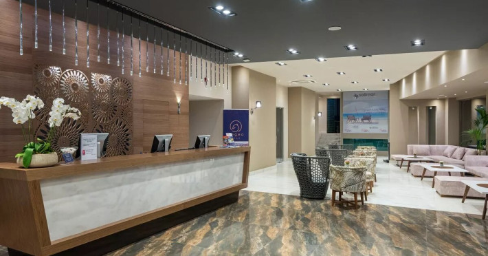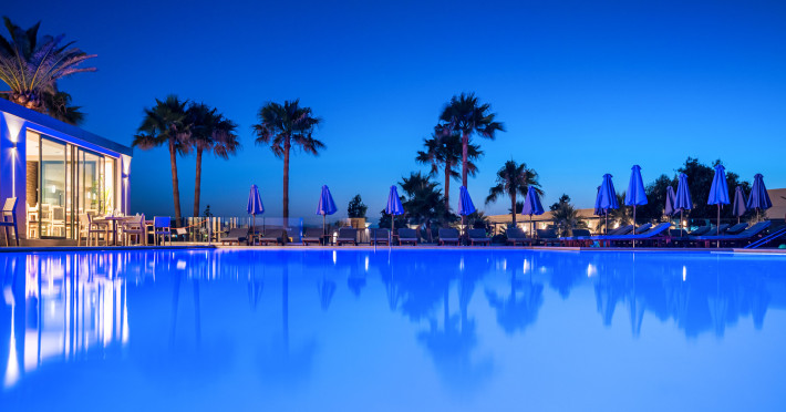 Solimar Aquamarine Hotel is superbly situated on the western coast of Crete Island, near Chania, only a few meters away from the sandy beach of Pirgos Psilonerou 16.7 km away from the center of Chania.