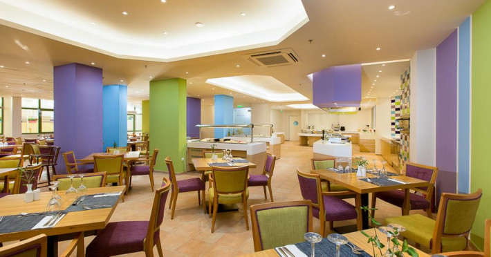 La Solimar Ruby oaspeții au la dispoziție 2 restaurante unde pot savura mâncăruri delicioase în stil bufet. Preparate din bucătăria grecească și internațională așteaptă să fie degustate în fiecare zi la micul dejun, prânz și cină. Masa poate fi servită atât în interior, cît si în aer liber, pe terasă, în funcție de vreme. 4 baruri, dintre care unul la piscină și unul pe plajă, sunt disponibile cu o ofertă variată de băuturi răcoritoare și alcoolice.