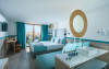 Unele camere au balcon, cu vedere la grădină, unde oaspeții se pot relaxa în compania celor dragi. Fiecare cameră dispune de cană-fierbător. În camere există baie cu cadă sau duș ce are în dotare foehn și articole de toaletă gratuite. Camerele confortabile de la Solimar Turquoise au pardoseală de gresie/ marmură, aer condiționat, Tv cu canale prin satelit și seif. Oaspeții au acces la serviciul Wi-fi în camere contra cost. Curățenia in cameră se face zilnic. Fiecare unitate de cazare are frigider. Proprietatea oferă camere pentru nefumători.