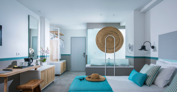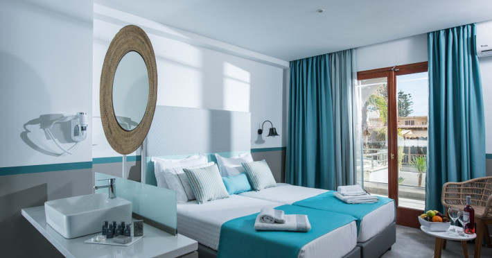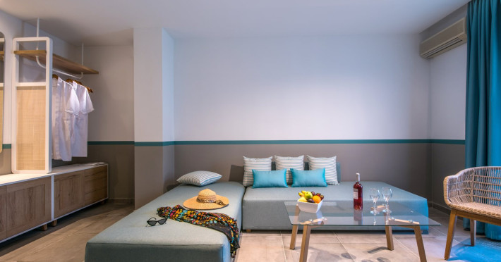 The Solimar Turquoise four stars Adults Only Hotel is fully renovated on winter 2018-2019, providing refined quality design along with plenitude services. The output of this combination, and the exceptional friendly atmosphere guarantee to our guests a very pleasant and memorable experience. The combination of the friendly service, the spacious Double Rooms, Studios and junior Suites , the exquisite local and Mediterranean cuisine create a pleasant, private and relaxing ideal holidays for modern couples, families and youngsters in a very cozy environment.