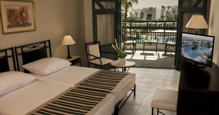 Sunt disponibile 195 camere. Unele camere au balcon cu vedere la grădină sau la piscină. În camere există baie cu cadă sau duș ce are în dotare foehn și articole de toaletă gratuite. Fiecare cameră dispune de cană-fierbător. Camerele confortabile de la Solymar Naama Bay sunt dotate cu pardoseală de gresie/ marmură, aer condiționat, Tv și seif. Curățenia in cameră se face zilnic. Toate camerele spațioase de la Solymar Naama Bay au canapea în living, ceea ce oferă un plus de confort. Proprietatea oferă camere pentru familie cu o suprafață mai mare și un număr mai mare de paturi față de cele standard. Se pot rezerva de asemenea camere pentru nefumători.
