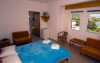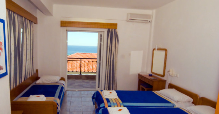 Camere family sunt situate la parter si au in dotare un pat dublu, 2 paturi single si balcon cu vedere la mare sau la gradina.