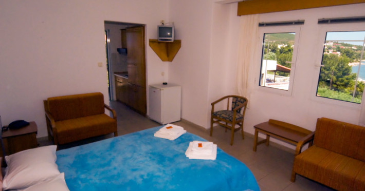 Studiourile se afla pozitionate chiar langa mare. Sunt formate din dormitor spatios cu pat dublu, baie cu cada, feon, telefon, internet, TV satelit, aer conditionat, chicineta, frigider si balcon cu vedere la mare.