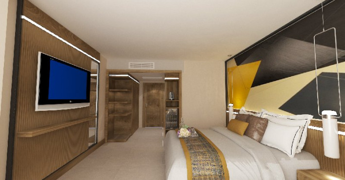 Facilitati camere: Avantajul acestui hotel este dat de camere, toate camerele au o dimensiune de 32 mp si sunt echipate modern cu tot ce este necesar peentru a avea o vacanta confortabila si memorabila. Toate camerele dispun de aer conditionat.