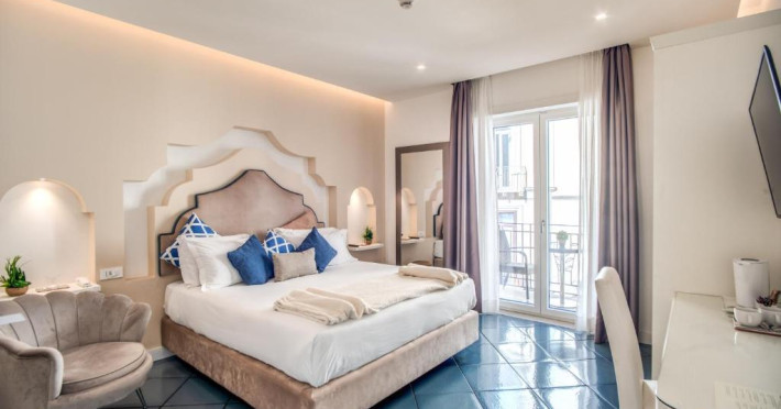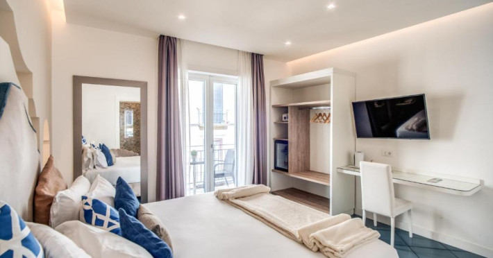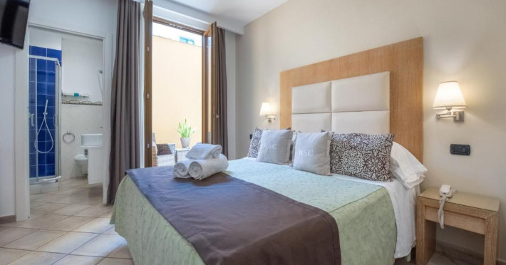 Fiecare dintre camerele confortabile este spațioasă și impecabil curată, cu o baie privată mare. Camera dvs. este dotată cu aer condiționat și TV prin satelit. Balconul dumneavoastră are o masă și scaune; ideal pentru o băutură inainte de cină, cu vedere la strada principală din Sorrento.