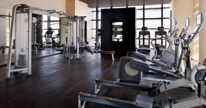 O sală de fitness cu echipamente necesare pentru o gamă variată de exerciții fizice este la dispoziția celor interesați.
