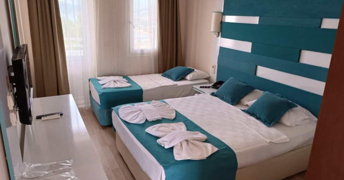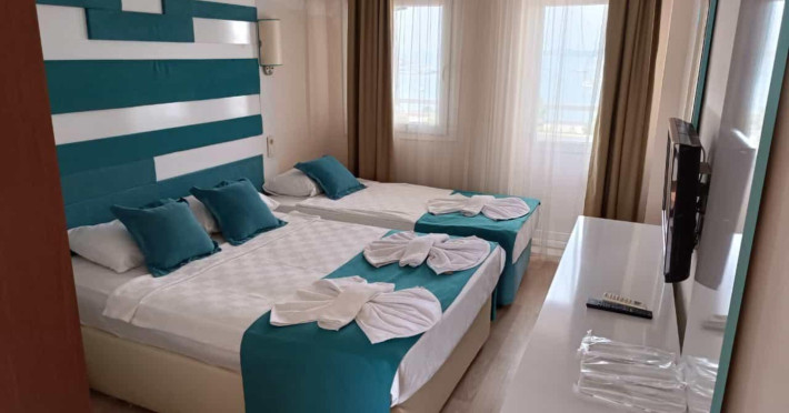 Around 500 m from a beach is located the hotel Soz Hotel. The nearest restaurants and bars can be found within 500 m. The old town is around 2 km away. The nearest shops you can reach within around 100 m, a supermarket is around 500 m away. There is Around 500 m from a beach is located the hotel Soz Hotel. The nearest restaurants and bars can be found within 500 m. The old town is around 2 km away. The nearest shops you can reach within around 100 m, a supermarket is around 500 m away. There is a 24h shuttle service between the hotel and the airport (for a fee) 24h a day. Nearby there is a disco which offers entertainment in high season. To reach the beach a shuttle (for a fee) is provided. The air-conditioned, GPS-verified halal hotel is equipped with a 24h reception (check-in is possible around the clock), a lobby, a lift, parking spaces (limited) as well as a TV lounge with satellite TV. In the outdoor area you will find a garden as well as a pool that is open seasonally, where sun loungers, sun umbrellas and pool towels are available for free. For children there is also a separate childrens pool. Furthermore, you can relax outdoors on a terrace. You can store your valuables in the safe, and your luggage in the hotels storage room. For your comfort, in addition to the concierge service the hotel page will ensure you are looked after. The energy supply is 220 Volts. In addition, the hotel sells tickets for excursions. For guests on their honeymoon, the hotel has special offers such as a romantically-decorated room, personalised rooms/articles, a basket of fruit or flowers in the room. In your hotel, a lot of focus is placed on sustainability. This includes the hotels own recycling bins, the provision of soap and shampoo dispensers and environmentally-friendly cleaning. That is why the hotel Soz Hotel was also awarded a sustainability certificate. American Express, Euro/Master Card and Visa are accepted as means of payment. Catering As catering services the hotel offers all-inclusive and breakfast only. Breakfast is offered continental or from the buffet. Lunch and dinner are also served from the buffet with starters and salads. All Inclusive Light includes coffee amp; tea as well as beer. When booking all-inclusive, one welcome drink is included. For the meals, there are a buffet restaurant and the pool bar. The drinks menu of the hotel includes water, soft drinks, coffee and tea and beer. Distances Nearest town: approximately at 200 m Airport: approximately at 40 km Bus stop: approximately at 100 m Cinema: approximately at 1 km Port: approximately at 2 km Distance to the sea: approximately at 500 m Nearest doctor: approximately at 1 km Nearest dentist: approximately at 100 m Pharmacy: approximately at 500 m Hospital: approximately at 5 km Dialysis station: approximately at 100 m Golf course: approximately at 15 km Nearest bank: approximately at 100 m Tourist information: approximately at 3 km Nearest highway: approximately at 100 m Nearest public transport: approximately at 3 km Nearest park: approximately at 2 km Nearest forest: approximately at 3 km Riding school: approximately at 20 km Nearest riding route: approximately at 20 km Dive spot: approximately at 200 m Dive shop: approximately at 200 m Additional information The hotel, last renovated in 2019, has a total of 74 rooms. This hotel is gay-friendly. The hotel staff speak English.