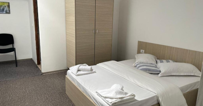 Camerele duble au o suprafara de 20 mp, grup sanitar cu cabina de dus, vedere la gradina/piscina.