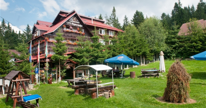 Pensiunea Speranta este situata in statiunea Predeal, la doar 1,5 km de centru, pe drumul spre Cabana Trei Brazi. Facilitati Pensiune Locatia ofera 17 camere Double si 3 Apartamente. Vila Speranta dispune de terasa, sauna, tenis de masa, loc de joaca pentru copii. Cele 2 sali de conferinta au 30 si respectiv 70 de locuri. Facilitati Camere Toate camerele au baie, cablu tv, frigider, minibar, balcon; exista si serviciul de room service. Masa - Mic Dejun Restaurantul are o capacitate de 40 locuri. Terasa are o capacitate de 80 locuri.Datorita dinamicitatii domeniului disponibilitatea ofertelor se modifica de la un moment la altul. De aceea ofertele sunt valabile in limita locurilor disponibile. Agentia nu este responsabila pentru eventualele neconcordante care pot aparea intre informatiile privind tarifele si alte detalii din site si informatiile primite in agentie. In aceste cazuri vor avea prioritate, intotdeauna, informatiile primite in agentie.