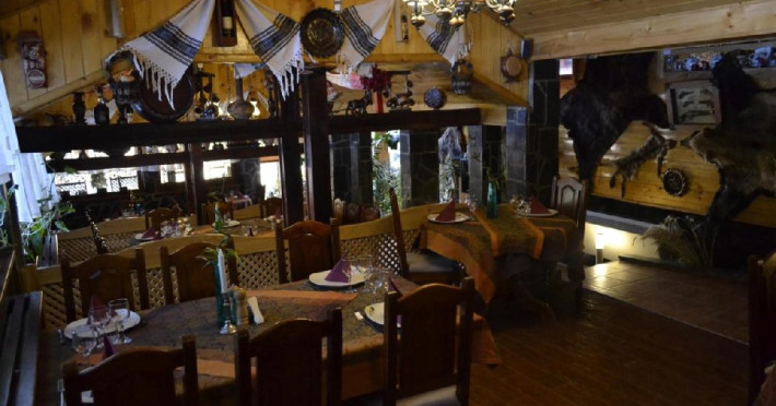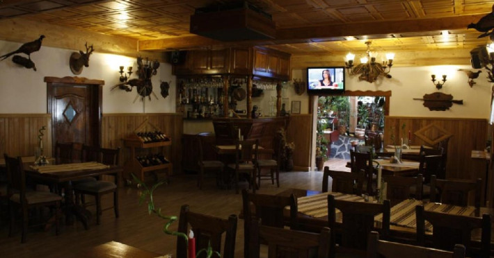 Primul salon, cu un numar de 40 de locuri, este amenajat intr-un stil rustic-vanatoresc.