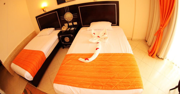 Sunt disponibile 214 camere. Camerele confortabile de la Sphinx Aqua Park Beach Resort sunt dotate cu pardoseală de gresie/ marmură, aer condiționat, Tv și seif. Oaspeții au la dispoziție serviciul de room service pentru a servi masa sau diverse băuturi. În camere există baie cu cadă sau duș prevăzută cu foehn. Unele camere au balcon, cu vedere la piscină, unde oaspeții se pot relaxa în voie. Curățenia in cameră se face zilnic. Proprietatea oferă camere pentru familie cu o suprafață mai mare și un număr mai mare de paturi față de cele standard. Se pot rezerva de asemenea camere pentru nefumători.