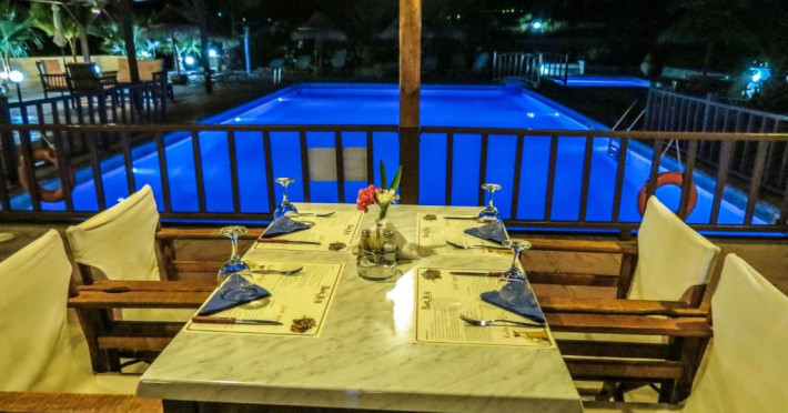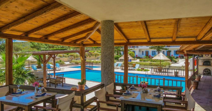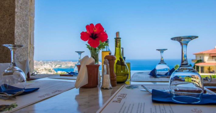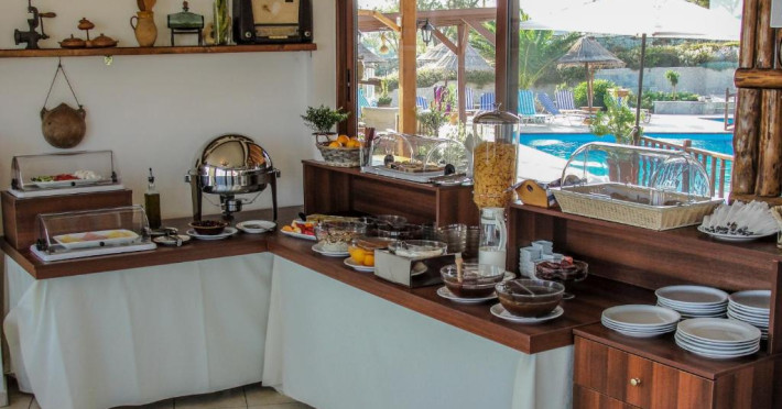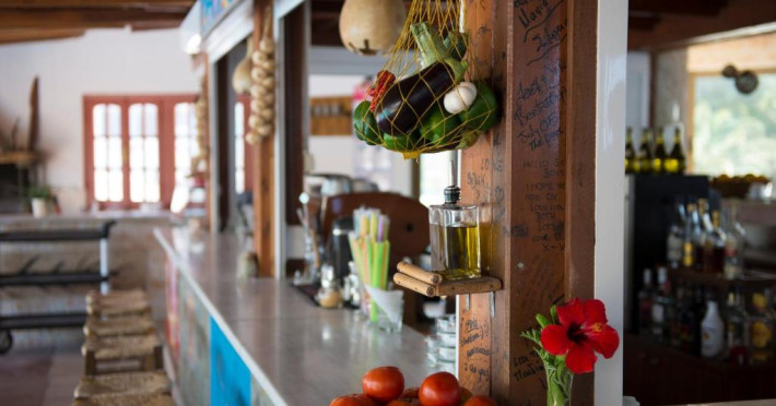 Barul-restaurant cu o vedere minunată la mare servește un mic dejun cretan autentic, precum și numeroase specialități tradiționale de casă la pranz și cină.