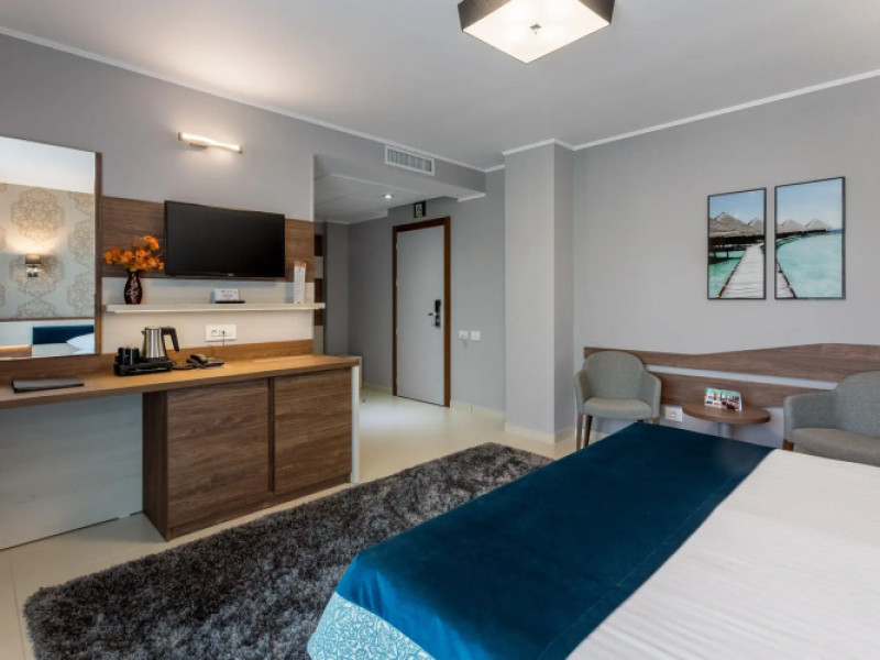 Splendid Conference amp; Spa Hotel is located in the north of Mamaia resort, on the shore of Lake Siutghiol, 200 meters from the beach. The hotel is located 1 km from the clubs in the northern area of the resort, 2.5 km from the Aqua Magic Water Park, 10 km from the train station and 24 km from Mihail Kogalniceanu Airport.Splendid Conference amp; Spa Hotel is located in the north of Mamaia resort, on the shore of Lake Siutghiol, 200 meters from the beach. The hotel is located 1 km from the clubs in the northern area of the resort, 2.5 km from the Aqua Magic Water Park, 10 km from the train station and 24 km from Mihail Kogalniceanu Airport.Meals are delivered to guest rooms on request.There is a laundry at the hotel.Hotel guests can benefit of a wellness center consists of an indoor pool area with Jacuzzi, dry sauna, wet sauna, shower emotional, ice fountain and area relaxation; Massage services are available by appointment notification, with an extra cost. The wellness center focuses exclusively on adults and children from the age of 16.Free Wi-Fi is provided in all rooms and all public areas; free private parking is available on site.Meals are delivered to guest rooms on request.There is a laundry at the hotel.Hotel guests can benefit of a wellness center consists of an indoor pool area with Jacuzzi, dry sauna, wet sauna, shower emotional, ice fountain and area relaxation; Massage services are available by appointment notification, with an extra cost. The wellness center focuses exclusively on adults and children from the age of 16.Free Wi-Fi is provided in all rooms and all public areas; free private parking is available on site.The hotels _33 accommodation spaces_ come with air-conditioning system, LCD TV with cable channels, mini-bar and safety deposit box. The bathrooms are equipped with a shower cabin, hairdryer, toiletries, slippers and a bathrobe.The hotels _33 accommodation spaces_ come with air-conditioning system, LCD TV with cable channels, mini-bar and safety deposit box. The bathrooms are equipped with a shower cabin, hairdryer, toiletries, slippers and a bathrobe..1 EUR not included 0 per room per nightThe minimum allowed age of guests is 16 years.Datorita dinamicitatii domeniului disponibilitatea ofertelor se modifica de la un moment la altul. De aceea ofertele sunt valabile in limita locurilor disponibile. Agentia nu este responsabila pentru eventualele neconcordante care pot aparea intre informatiile privind tarifele si alte detalii din site si informatiile primite in agentie. In aceste cazuri vor avea prioritate, intotdeauna, informatiile primite in agentie.