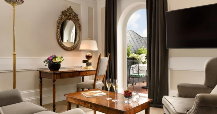 Hotel Splendide Royal - The Leading Hotels of the World features spacious accommodation of extreme elegance and class. Each room is equipped with satellite TV with pay-per-view channels, and some suites have a private terrace overlooking Villa Borghese.