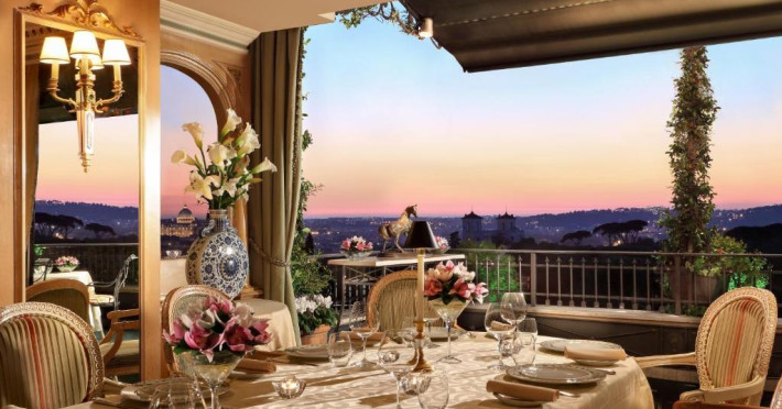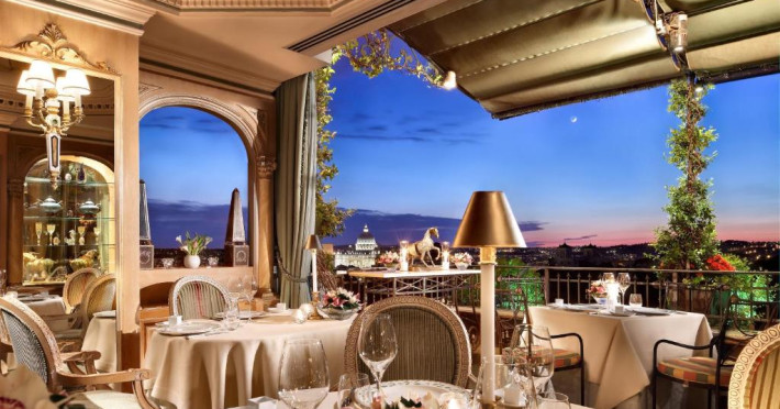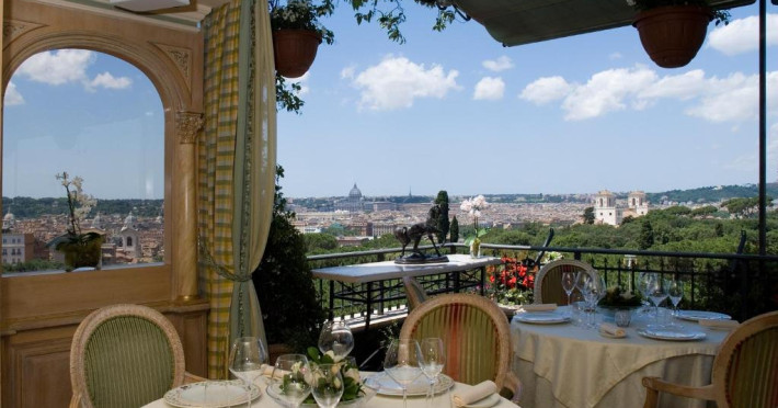 Set between Via Veneto and the beautiful gardens of Villa Borghese, Hotel Splendide Royal is a converted 19th-century monastery. The restaurant with terrace offers magnificent views of Rome's rooftops.