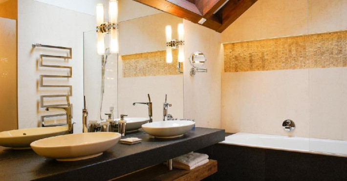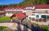 Apartament King Junior: Spatiul generos si atent compartimentat este perfect pentru familii cu copii. Cu vedere spre statiune si spre padure, apartamentul ofera un remarcabil living, cu sofa bed si canapea, TV plasma si acces la internet. Inca un TV plasma se afla in dormitor. Patul king are saltea ergonomica Voglauer, perne si cearceafuri fine, care te fac sa redescoperi un somn odihnitor. Baia cu lumina naturala dispune de cada, cabina de dus si produse de ingrijire Chopard.