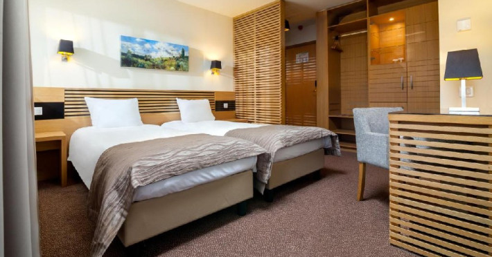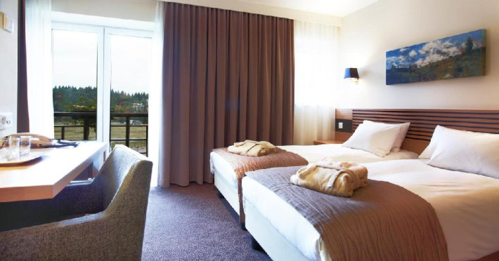 Camera Twin: Cu o captivanta priveliste spre Poiana Brasov sau spre padurile de brazi, camerele Twin sunt decorate in culori odihnitoare, inspirate din natura.