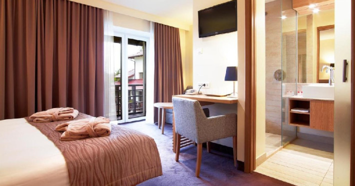 Facilitati camere: cele 80 de camere duble (Standard si Deluxe, cu pat matrimonial sau paturi twin) si 9 apartamente sunt dotate cu TV, minibar, baie cu cada sau dus, internet, uscator de par - in camere deluxe si apartamente, telefon.