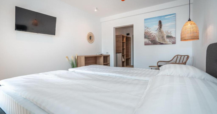 Toate unitățile sunt echipate cu climatizare, un televizor cu ecran plat cu canale prin satelit, un frigider, o cafetieră, un duș, articole de toaletă gratuite și un dulap pentru haine. Fiecare cameră este dotată cu o baie proprie cu un uscător de păr, iar unele camere ale acestei proprietăți vă oferă un balcon sau să vedeți la mare. La această pensiune, camerele includ lenjerie de pat și prosoape.