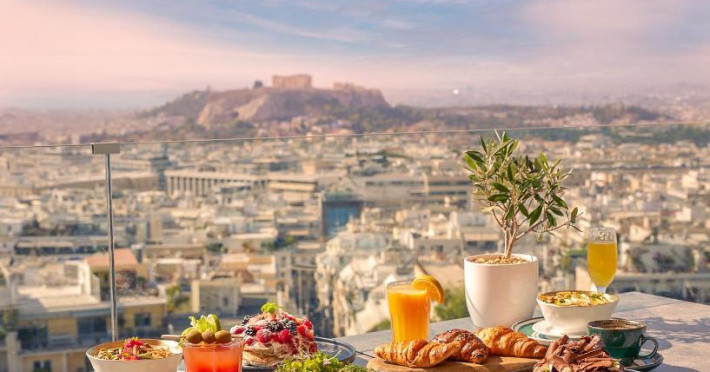 St George Lycabettus Lifestyle Hotel servește micul dejun tip bufet sau american.
