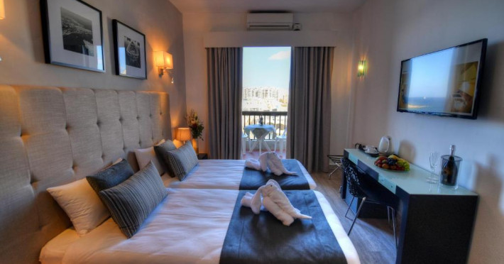 Hotelul St. Julian's Bay este situat la doar 50 de metri de centrul orașului și oferă vedere la Marea Mediterană. Pune la dispoziție camere cu aer condiționat și baie privată. In intreaga proprietate este disponibil acces gratuit la internet WiFi.